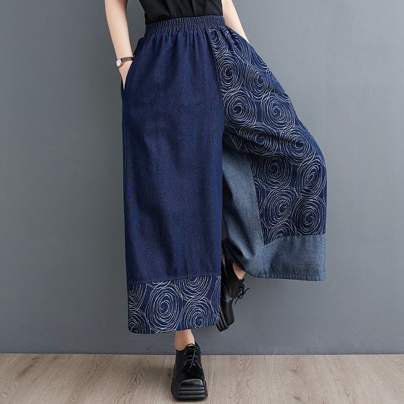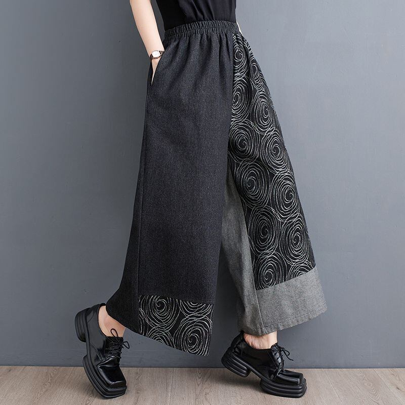渦巻き柄が目を惹く、個性的なクロップドパンツ。