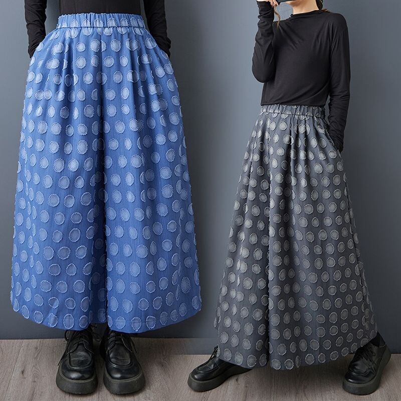 ドット柄 ワイドレッグパンツ 00011