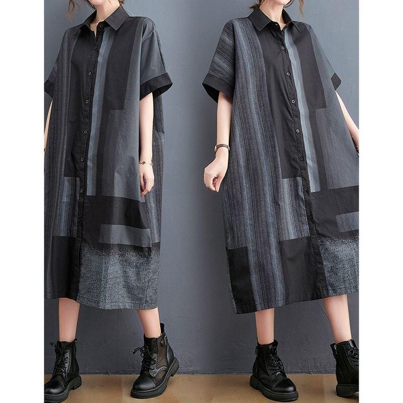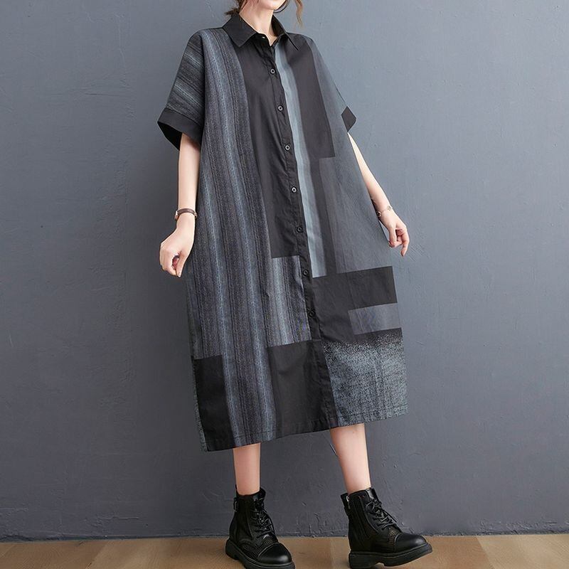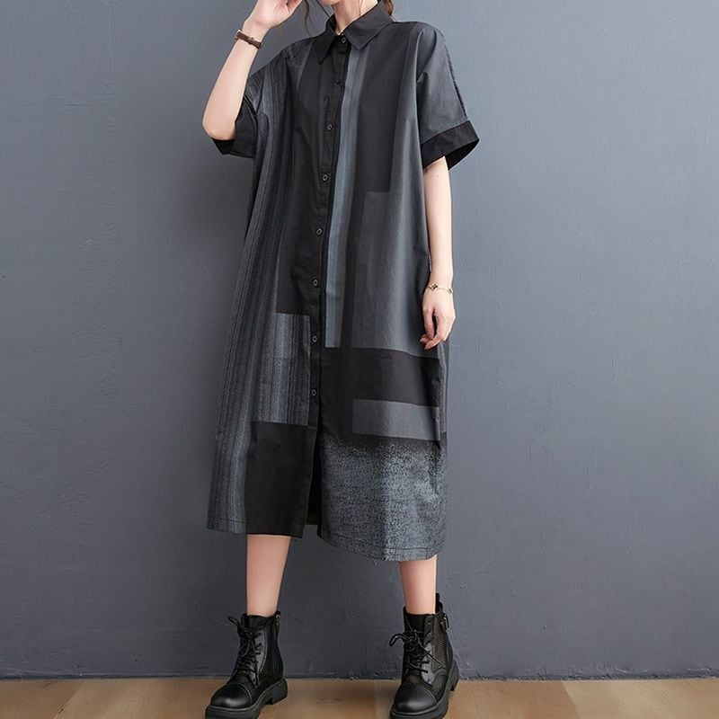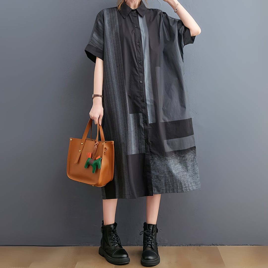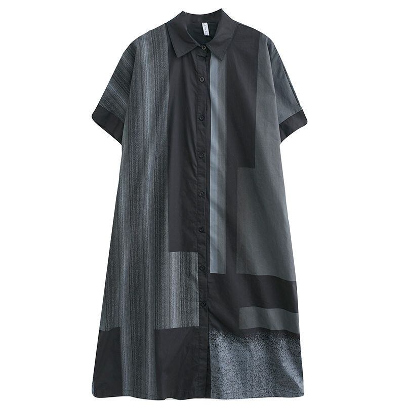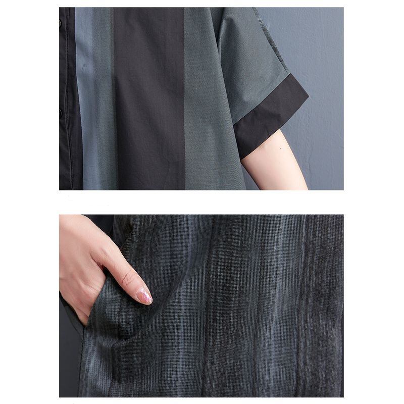 配色パッチワーク シャツワンピース 30006