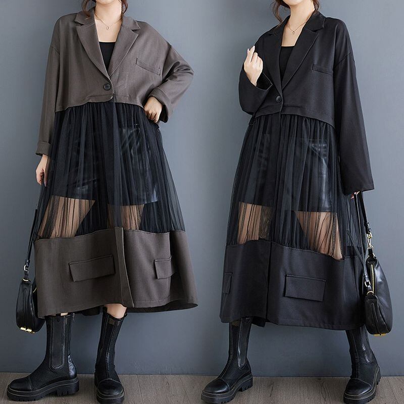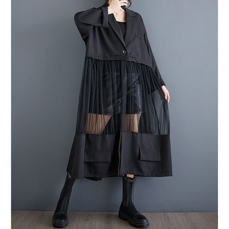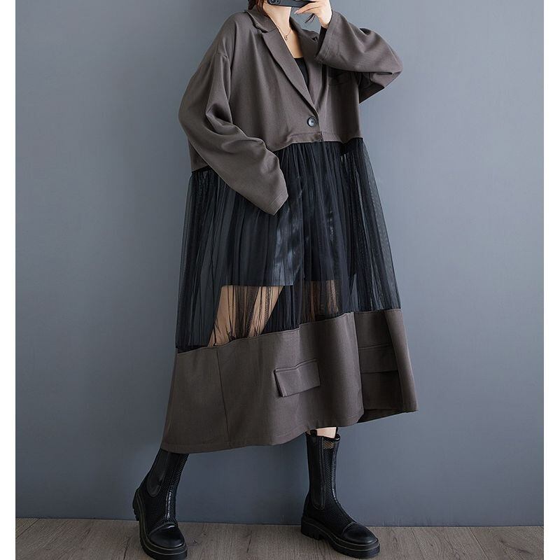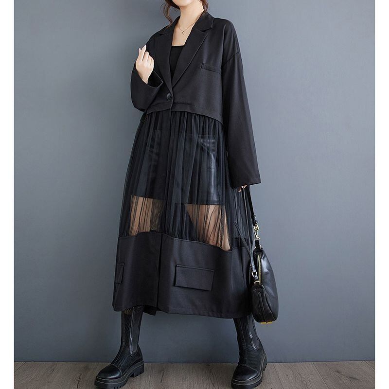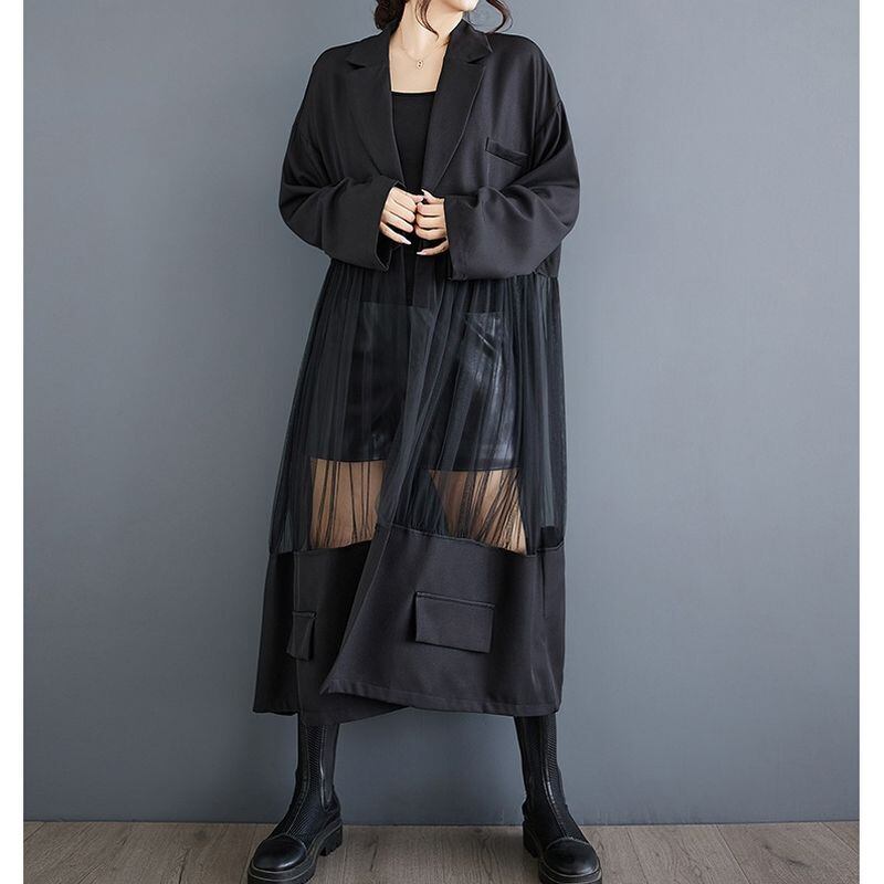 異素材切り替え 軽やか ロングジャケット 00207