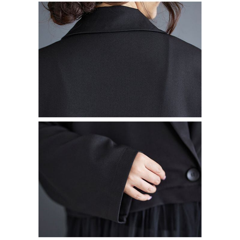 テーラード風のしっかり素材とシアーなチュールで軽やかさを演出。