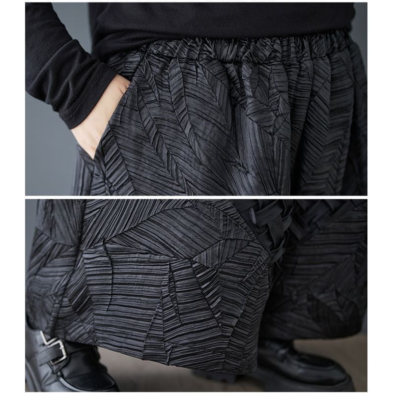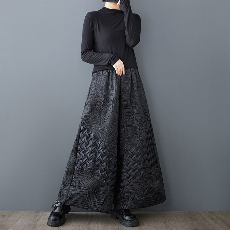 立体感のあるテクスチャーが印象的なワイドパンツ。