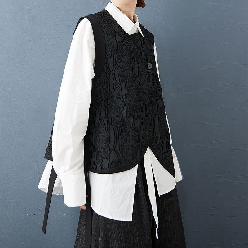 立体的なエンボス加工が施された個性派アシンメトリーベスト。