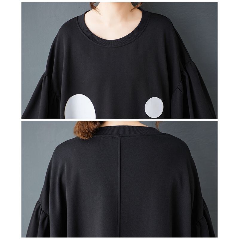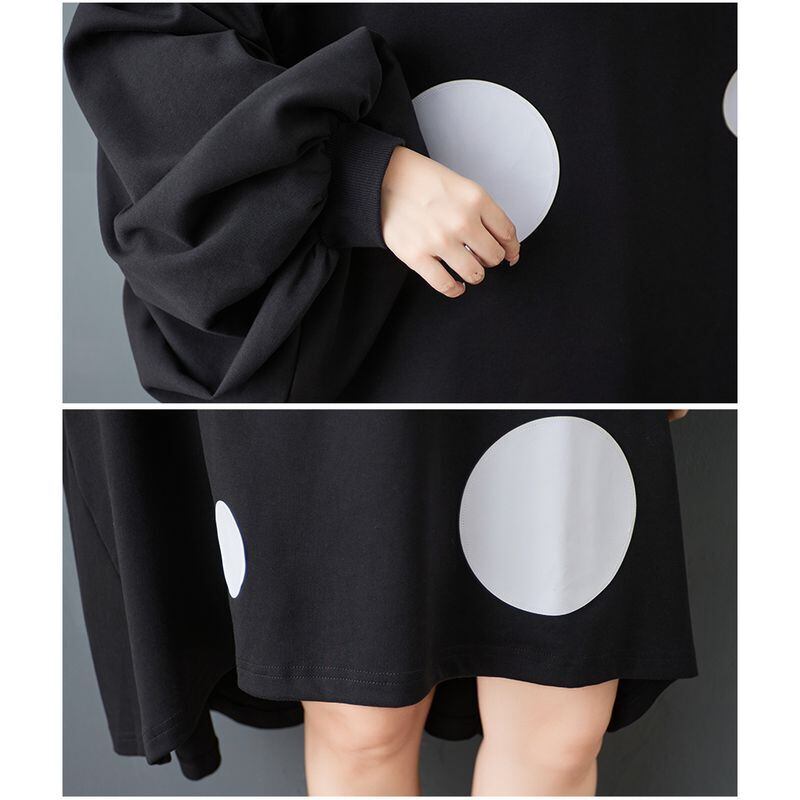 アシンメトリーなヘムラインとランダムドット柄が、着こなしにこなれ感をプラスします。