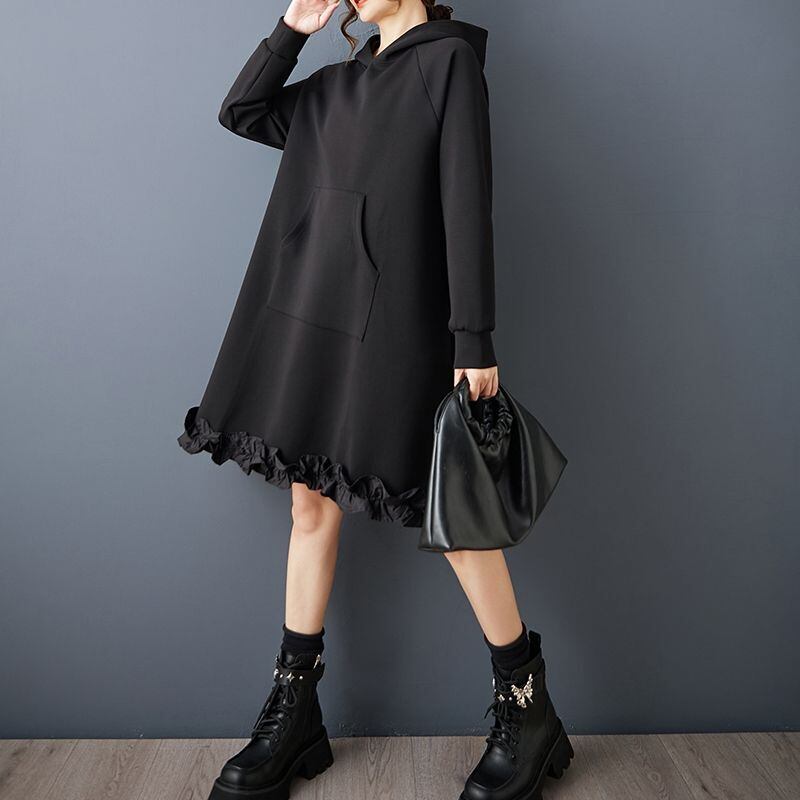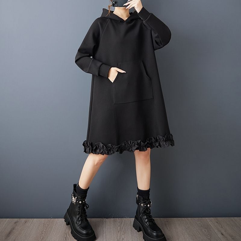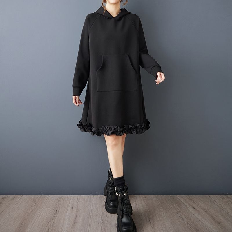 スポーティーなパーカーに、フリルの甘さをプラスしたワンピース。