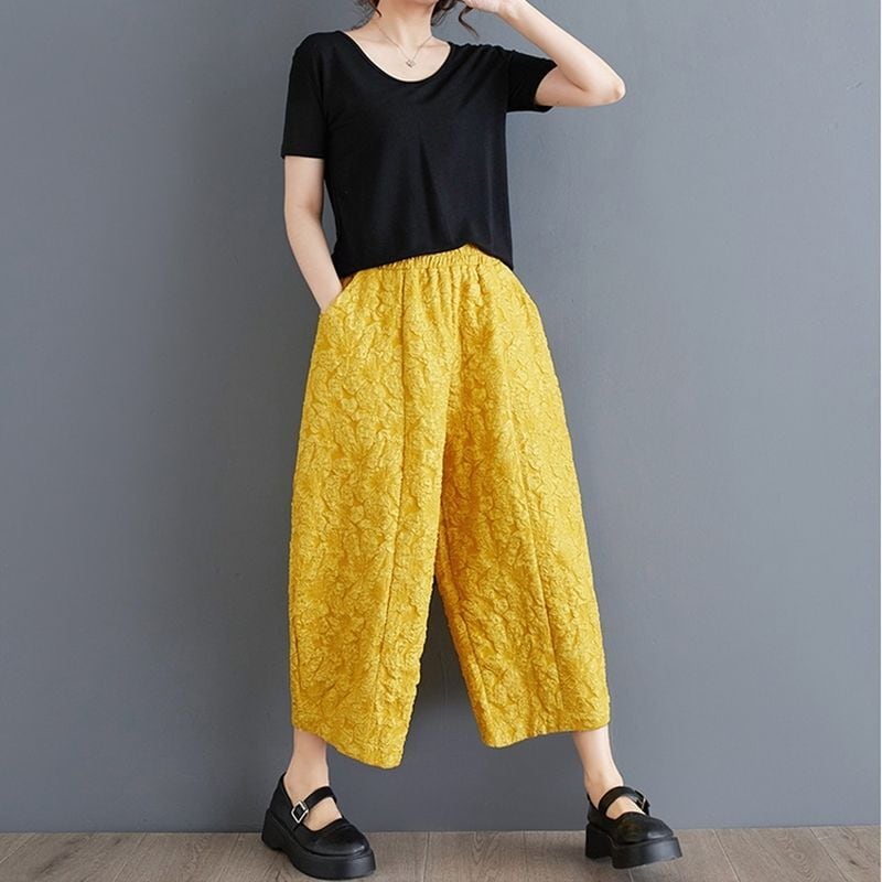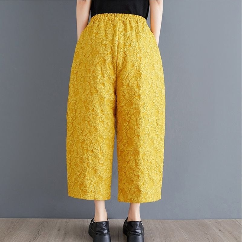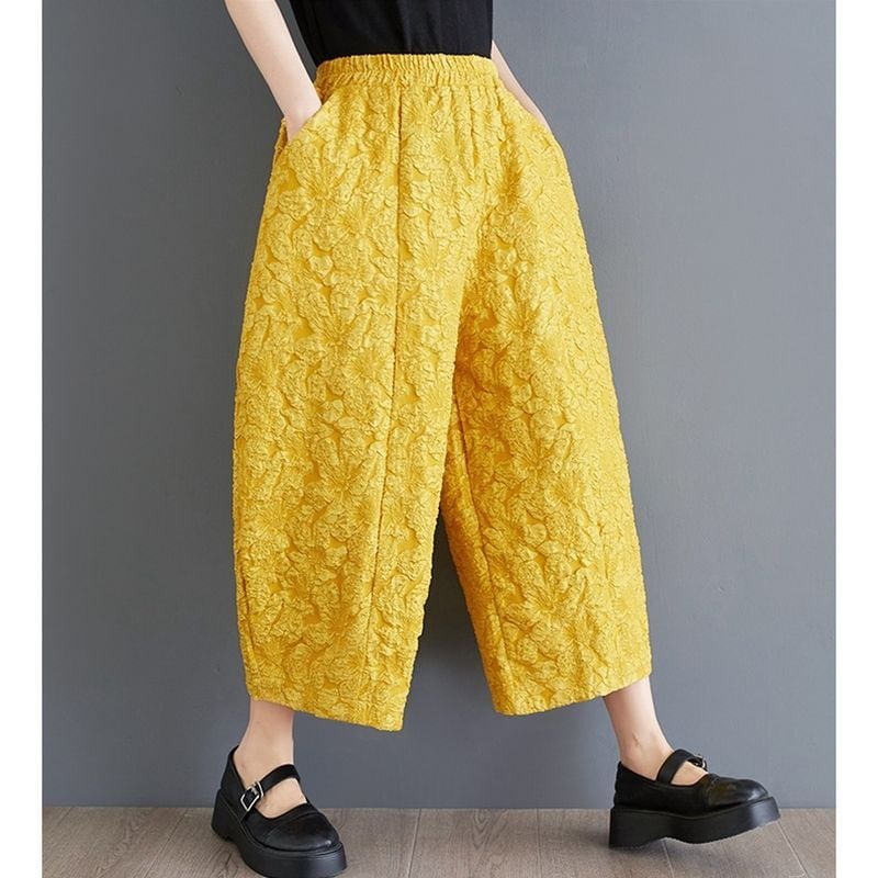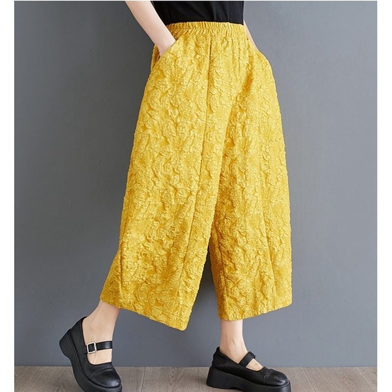 立体的なフラワーレースが華やかなクロップド丈ワイドパンツ。 ウエストゴムでリラックスした履き心地を実現します。 黒とイエローの2色展開で、カジュアルにもエレガントにも映えるアイテムです。 【サイズ】 M ウエスト:66-94cm ヒップ:132cm ズボン丈:80cm L ウエスト:68-98cm ヒップ:136cm ズボン丈:81cm XL ウエスト:70-102cm ヒップ:140cm ズボン丈:82cm ※モデル:F 着用 (身長:160cm 体重:51kg) ※手採寸のため1-3cmの誤差が生じることがございます。 【カラー】 ・ブラック ・イエロー 【素材】 ・ポリエステル ・その他 ■大人気 *Hot item* をご紹介 https://shop.morebelle.com/categories/6319500 ■MoreBelleでおしゃれをお楽しみください。 下記URLよりコレクションをチェック https://shop.morebelle.com 【お届けについて】 こちらの商品は海外店舗より直接発送となる為、 ご注文から 1~4週間(平均2週間)前後で発送いたします。 ■注意事項 ・タイミングによっては 商品在庫切れにより 注文キャンセルとさせていただく恐れもございますので、予めご了承くださいませ。 ・こちらは輸入品となります。日本製とは検品基準が異なる為、 新品未使用品でもごくわずかな汚れや ほつれがある場合もございます。 ・仕入れ工場を変えることがあるため、記載サイズと若干異なる場合がございます。 ・商品の色味は、お使いのモニター環境によって実物と若干異なる場合がございます。 ・イメージ違いやサイズ交換等、お客さまご都合による交換、返品は対応出来かねます。 ■Instagramで新しいファッションをシェア https://www.instagram.com/morebelle.official ------------------------ ご購入前にこちらをお読みください →https://shop.morebelle.com/about ------------------------ ※メールアドレスはキャリアメール以外をご入力いただきますよう、ご協力をお願いします。