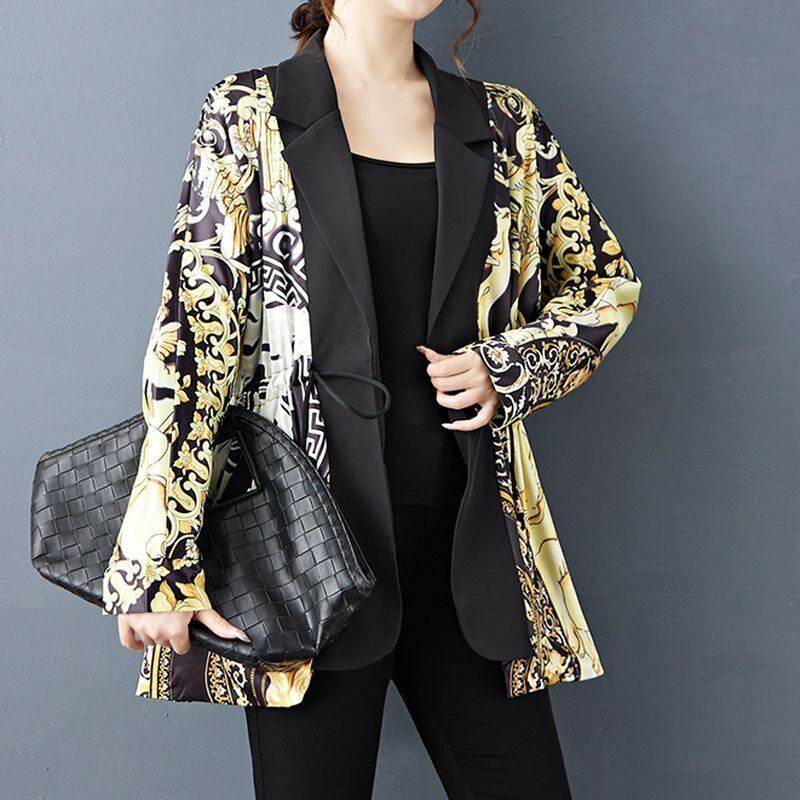 華やかなゴールド柄とシックな黒の無地で仕上げたジャケット。