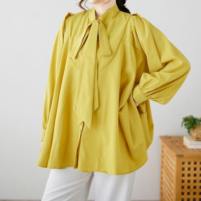 首元の大きなリボンタイが目を引くデザインブラウス。 ゆったりとしたシルエットに、ふんわりとしたバルーンスリーブが、上品な華やかさを引き立てます。 一枚で主役になり、パンツにもスカートにも好相性なアイテムです。 【サイズ】 F 胸囲:152cm 着丈:70cm 裄丈:69cm ※モデル:F 着用 (身長:160cm 体重:51kg) ※手採寸のため1-3cmの誤差が生じることがございます。 【カラー】 ・ホワイト ・ブラック ・ブラウン ・イエロー 【素材】 ・ポリエステル ・コットン ・その他 ■大人気 *Hot item* をご紹介 https://shop.morebelle.com/categories/6319500 ■MoreBelleでおしゃれをお楽しみください。 下記URLよりコレクションをチェック https://shop.morebelle.com 【お届けについて】 こちらの商品は海外店舗より直接発送となる為、 ご注文から 1~4週間(平均2週間)前後で発送いたします。 ■注意事項 ・タイミングによっては 商品在庫切れにより 注文キャンセルとさせていただく恐れもございますので、予めご了承くださいませ。 ・こちらは輸入品となります。日本製とは検品基準が異なる為、 新品未使用品でもごくわずかな汚れや ほつれがある場合もございます。 ・仕入れ工場を変えることがあるため、記載サイズと若干異なる場合がございます。 ・商品の色味は、お使いのモニター環境によって実物と若干異なる場合がございます。 ・イメージ違いやサイズ交換等、お客さまご都合による交換、返品は対応出来かねます。 ■Instagramで新しいファッションをシェア https://www.instagram.com/morebelle.official ------------------------ ご購入前にこちらをお読みください →https://shop.morebelle.com/about ------------------------ ※メールアドレスはキャリアメール以外をご入力いただきますよう、ご協力をお願いします。