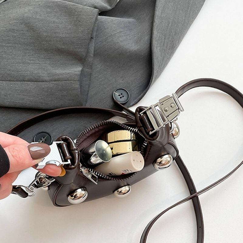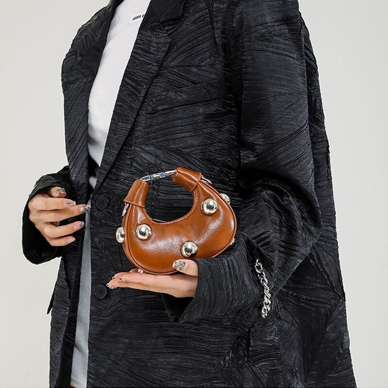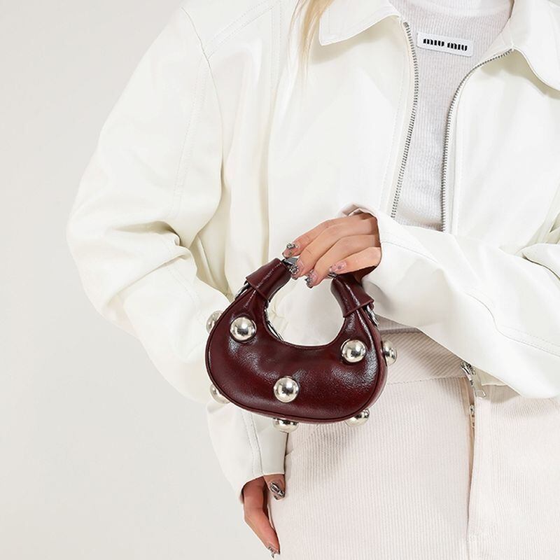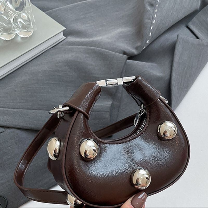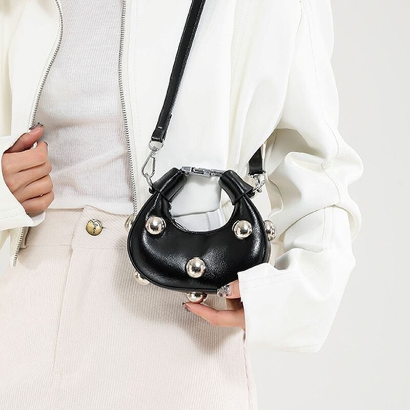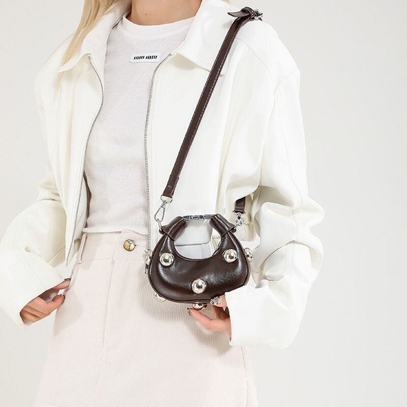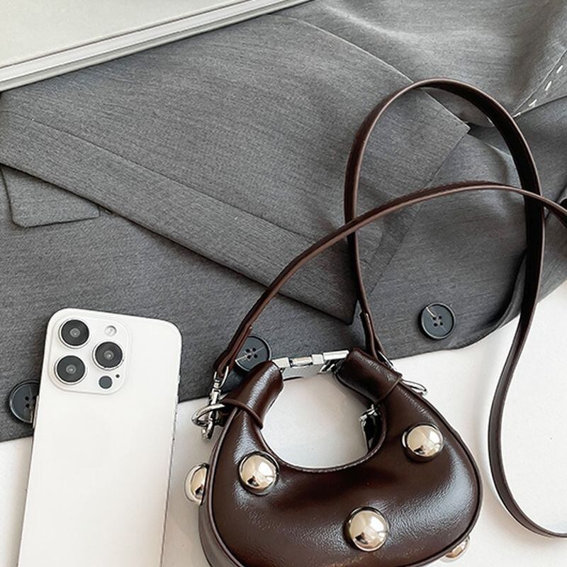 丸みを帯びた半月型フォルムが目を引くミニショルダーバッグ。 大ぶりのスタッズがアクセントになり、シンプルながら個性を際立たせます。 ハンドバッグとしてもショルダーとしても使える、軽やかで便利なデザインです。 【サイズ】 One 幅:14cm 高さ:13cm マチ:5.5cm ストラップ:120cm 重量:0.17kg ※手採寸のため誤差が生じることがございます。 【カラー】 ・ブラック ・ダークブラウン ・ダークレッド ・ダークグリーン ・ライトブラウン 【素材】 ・PU ・その他 ■大人気 *Hot item* をご紹介 https://shop.morebelle.com/categories/6319500 ■MoreBelleでおしゃれをお楽しみください。 下記URLよりコレクションをチェック https://shop.morebelle.com 【お届けについて】 こちらの商品は海外店舗より直接発送となる為、 ご注文から 1~4週間(平均2週間)前後で発送いたします。 ■注意事項 ・タイミングによっては 商品在庫切れにより 注文キャンセルとさせていただく恐れもございますので、予めご了承くださいませ。 ・こちらは輸入品となります。日本製とは検品基準が異なる為、 新品未使用品でもごくわずかな汚れや ほつれがある場合もございます。 ・仕入れ工場を変えることがあるため、記載サイズと若干異なる場合がございます。 ・商品の色味は、お使いのモニター環境によって実物と若干異なる場合がございます。 ・イメージ違いやサイズ交換等、お客さまご都合による交換、返品は対応出来かねます。 ■Instagramで新しいファッションをシェア https://www.instagram.com/morebelle.official ------------------------ ご購入前にこちらをお読みください →https://shop.morebelle.com/about ------------------------ ※メールアドレスはキャリアメール以外をご入力いただきますよう、ご協力をお願いします。