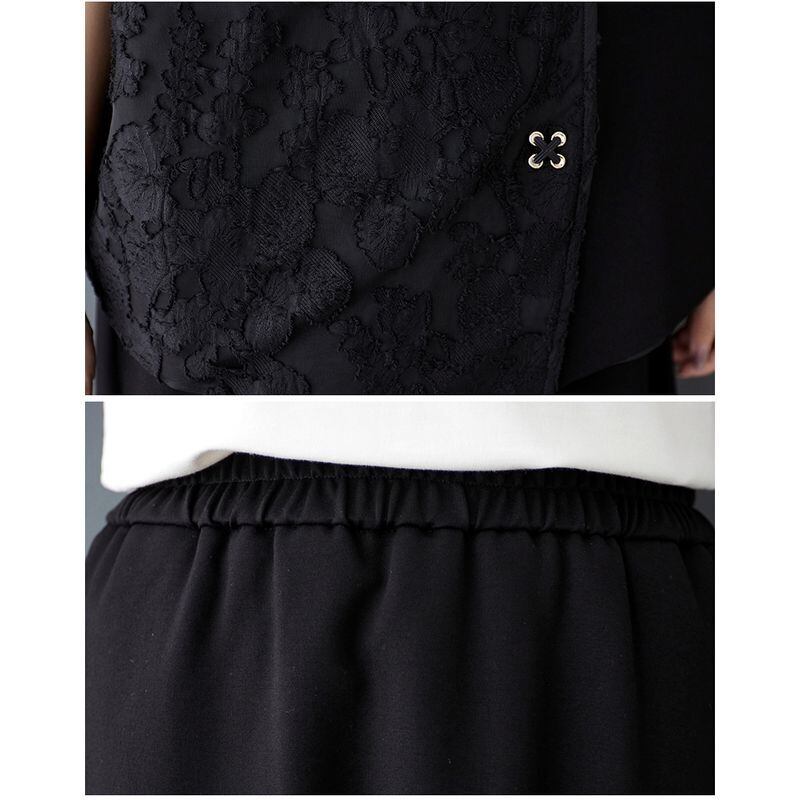スカートは、裾にレースをあしらい、女性らしい雰囲気を演出します。
