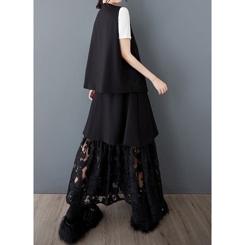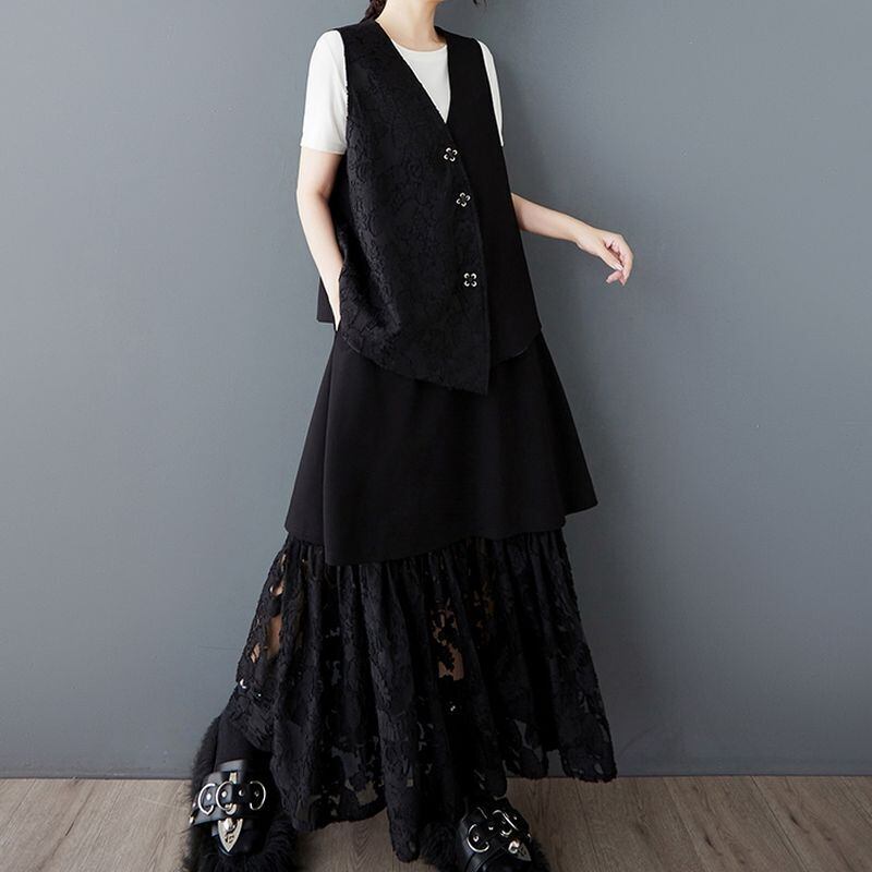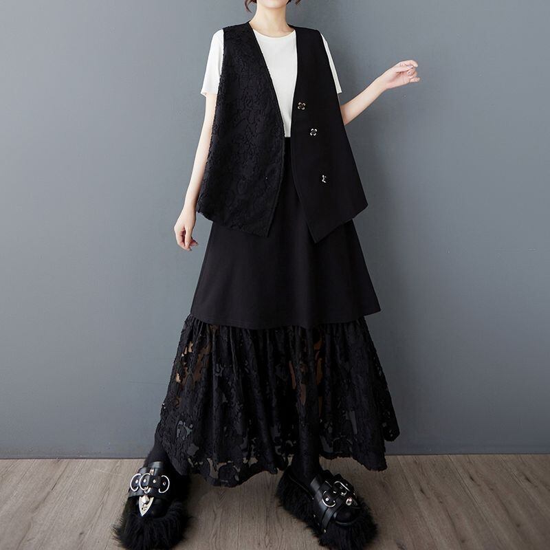 洗練されたデザインのベストとスカートのセットアップです。