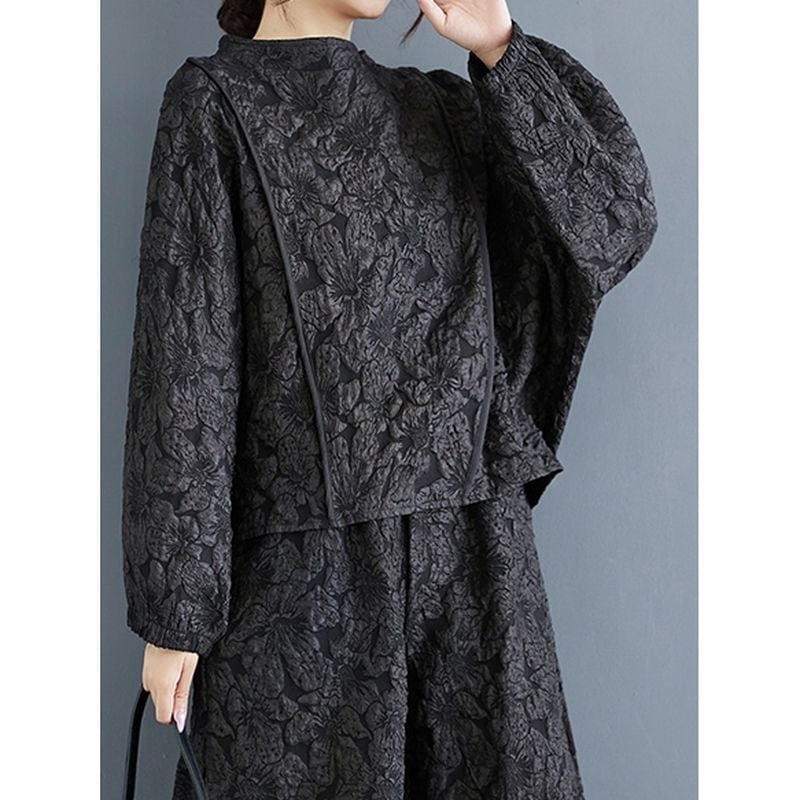 立体感のある花柄ジャカードが印象的なセットアップ。