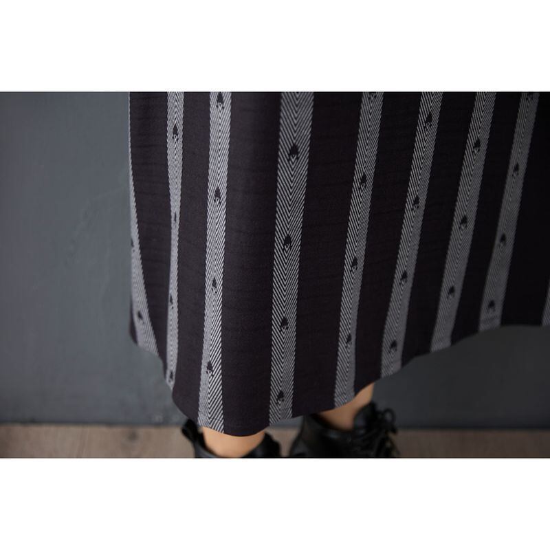 黒地に映える矢羽ストライプが印象的なロングワンピース。