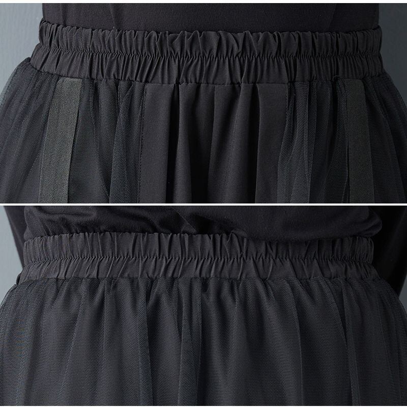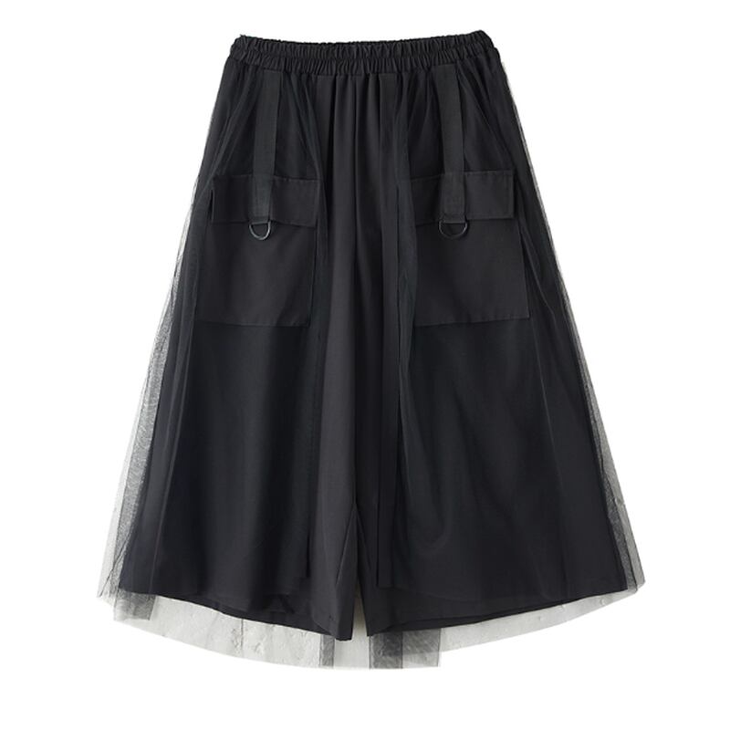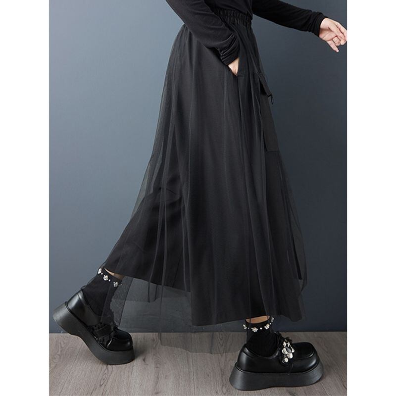 ワイドパンツにチュールを重ねた、レイヤード風のデザイン。