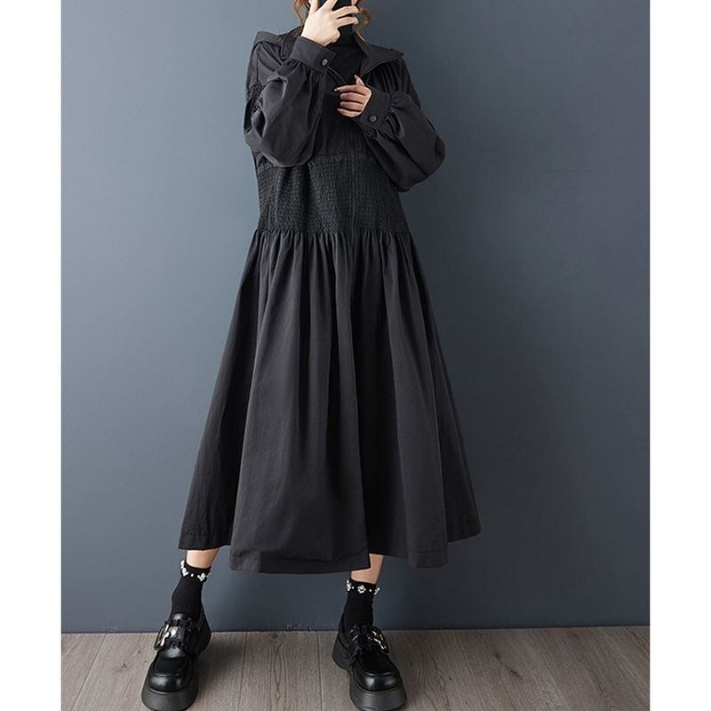 ウエストの幅広シャーリングがシルエットにメリハリを生み出します。