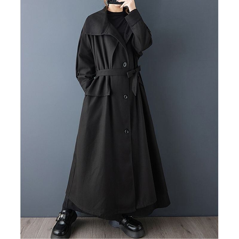 共布ベルトでウエストマークすれば、Aラインシルエットを楽しめる一枚です。