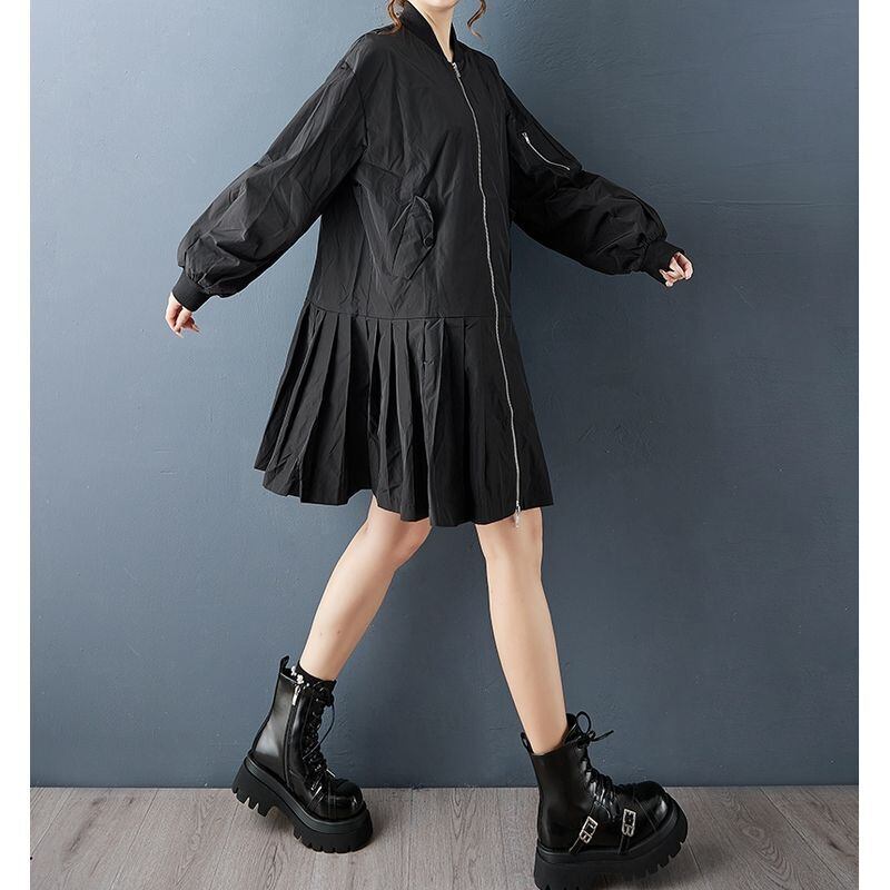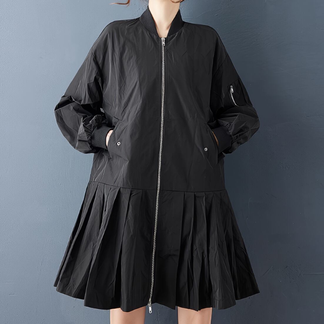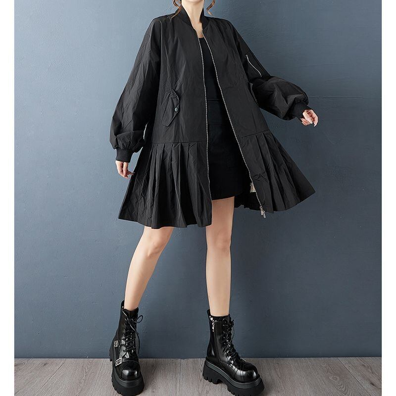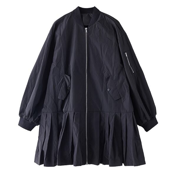 MA-1デザインをベースに、裾に幅広プリーツを組み合わせたブルゾン。