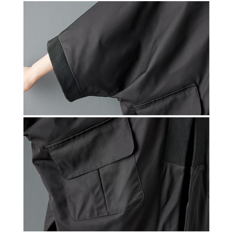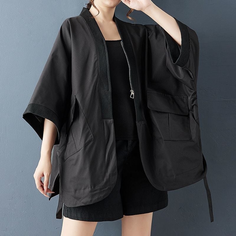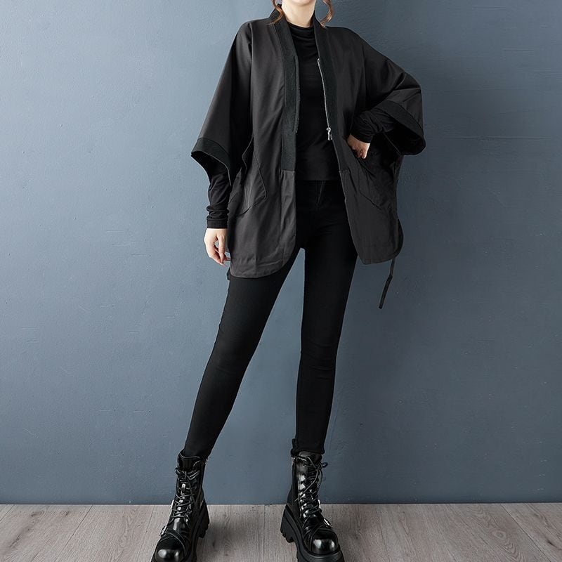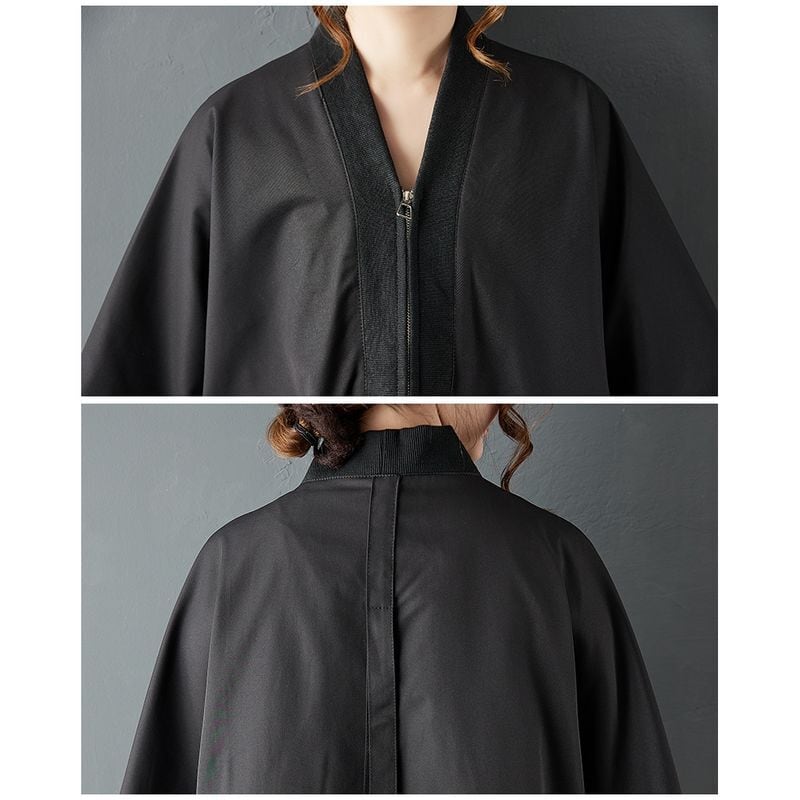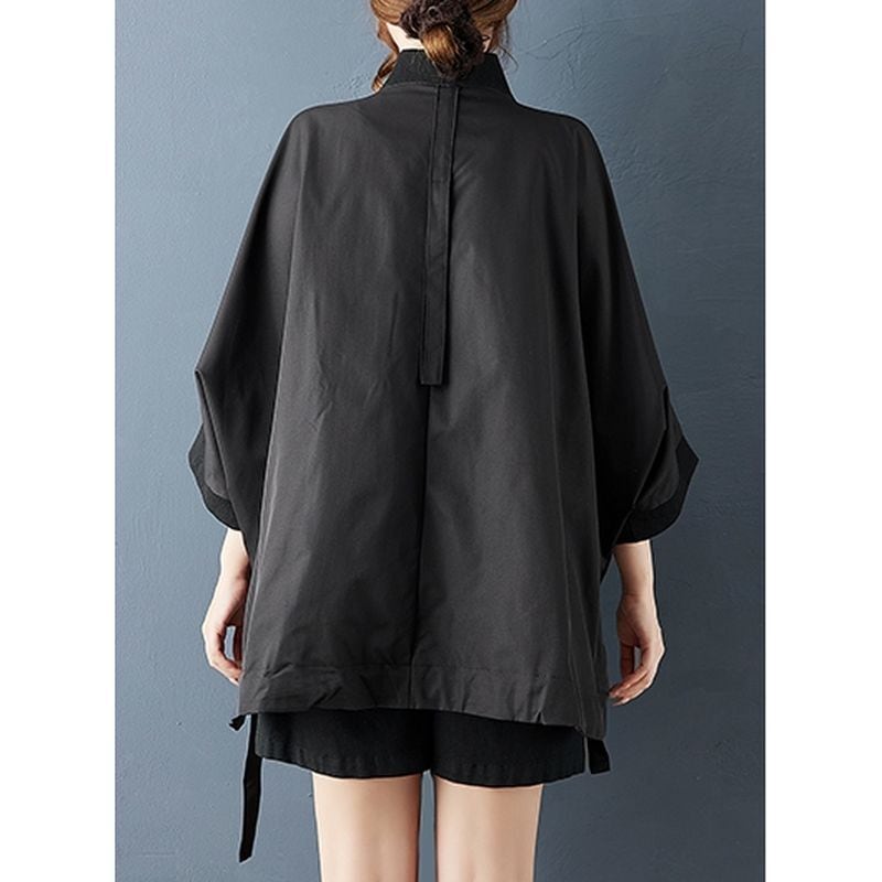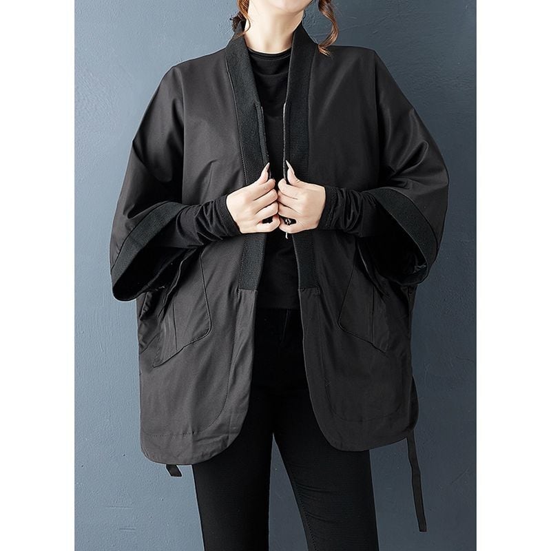 Vネックのショート丈ブルゾンで、ゆったりとしたビッグシルエットが特徴。