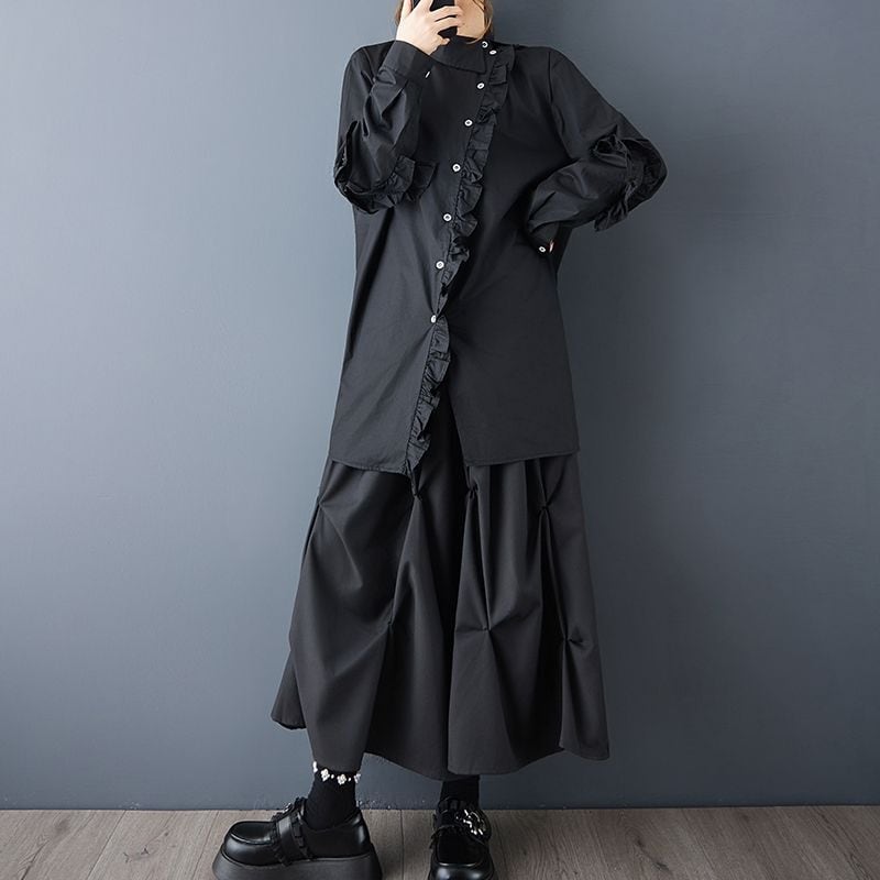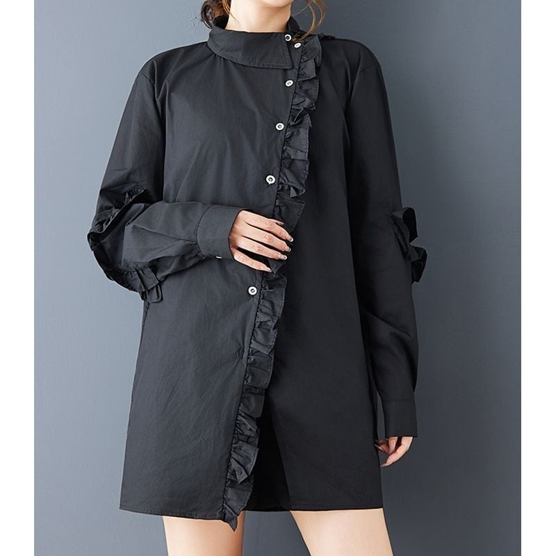 アシンメトリー フリル ロングシャツ 00173