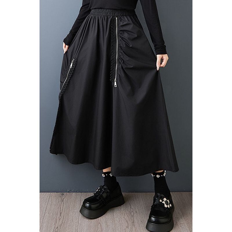 アシンメトリー ファスナー ギャザー スカート 00278