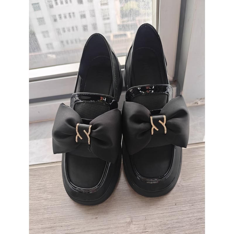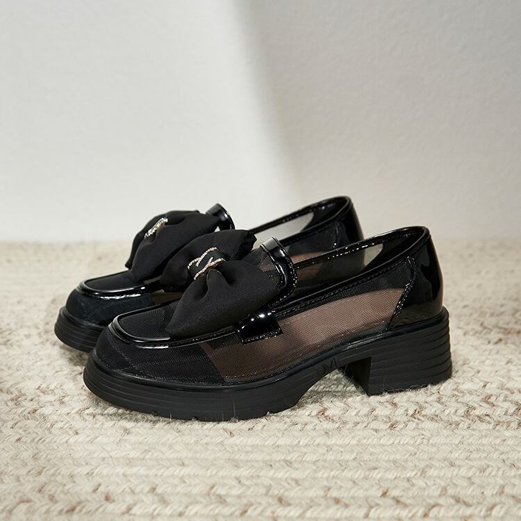 ツヤ感のある素材と、透けるメッシュを組み合わせた異素材ローファー。