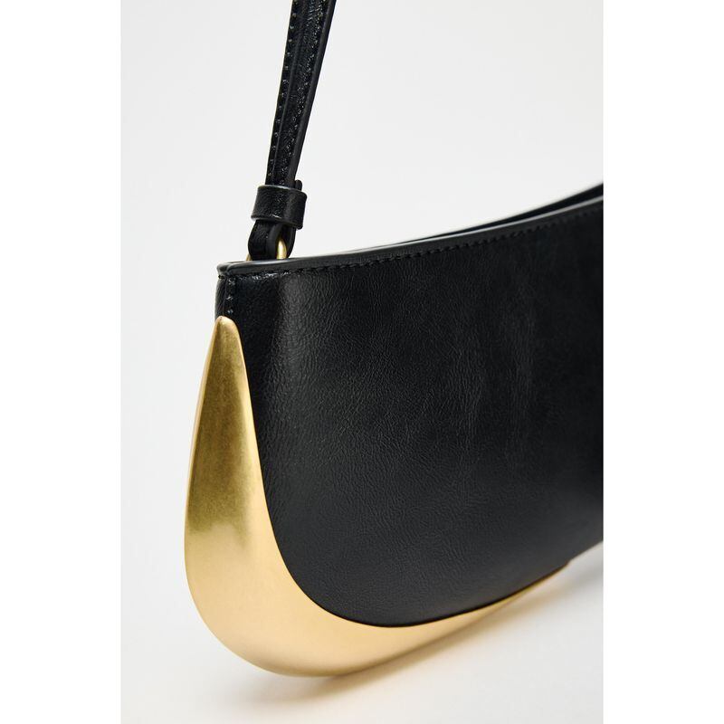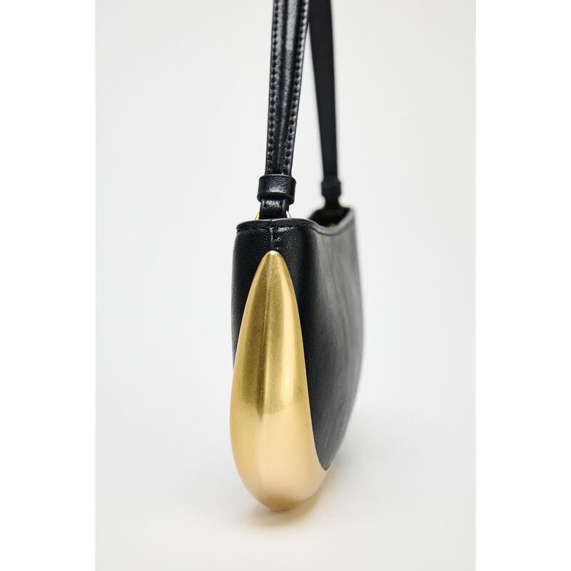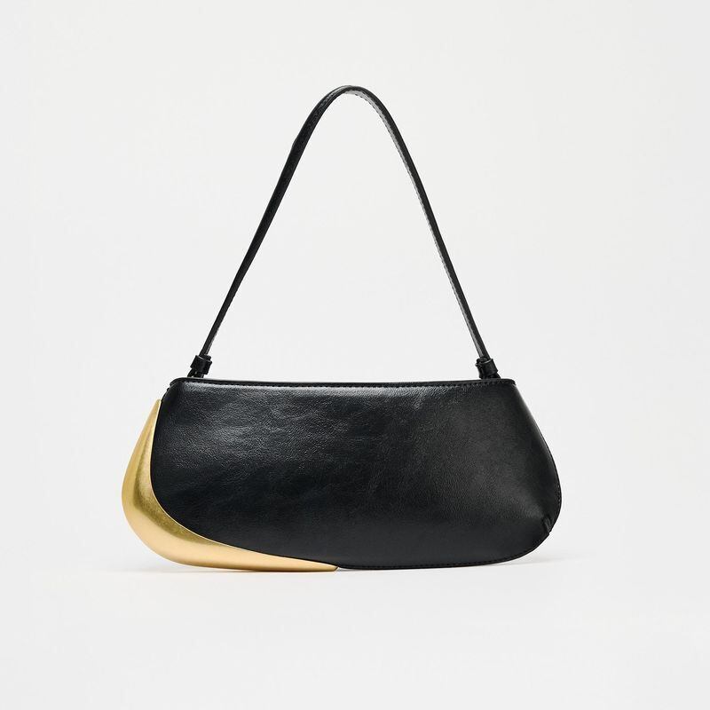 滑らかなフォルムに、曲線を描くゴールドパーツが輝くデザインバッグ。