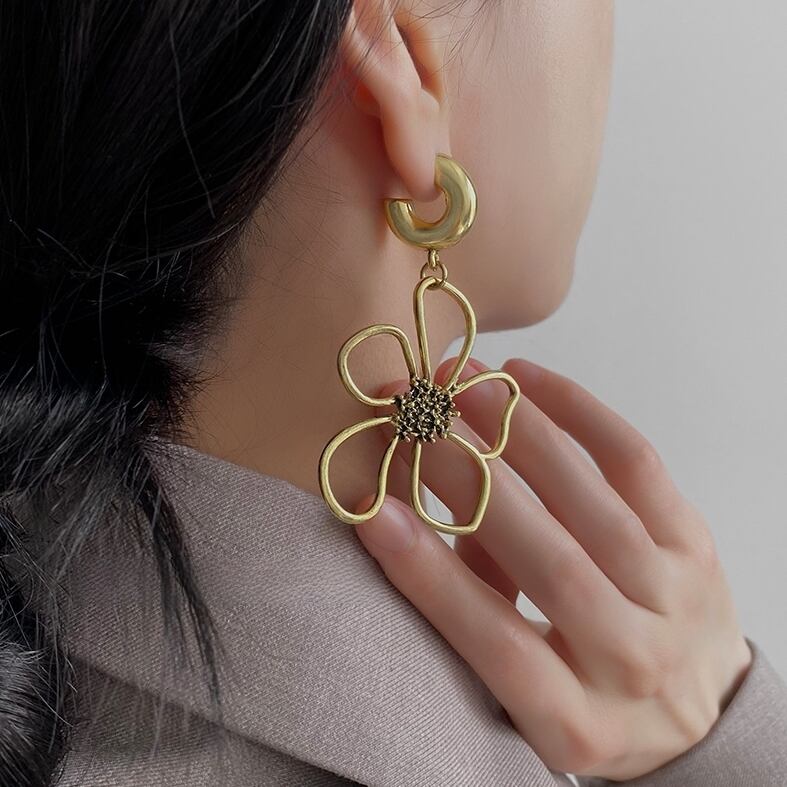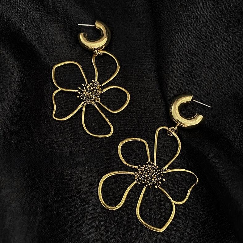 大ぶりの花モチーフが耳元で華やかに揺れるドロップピアス。
