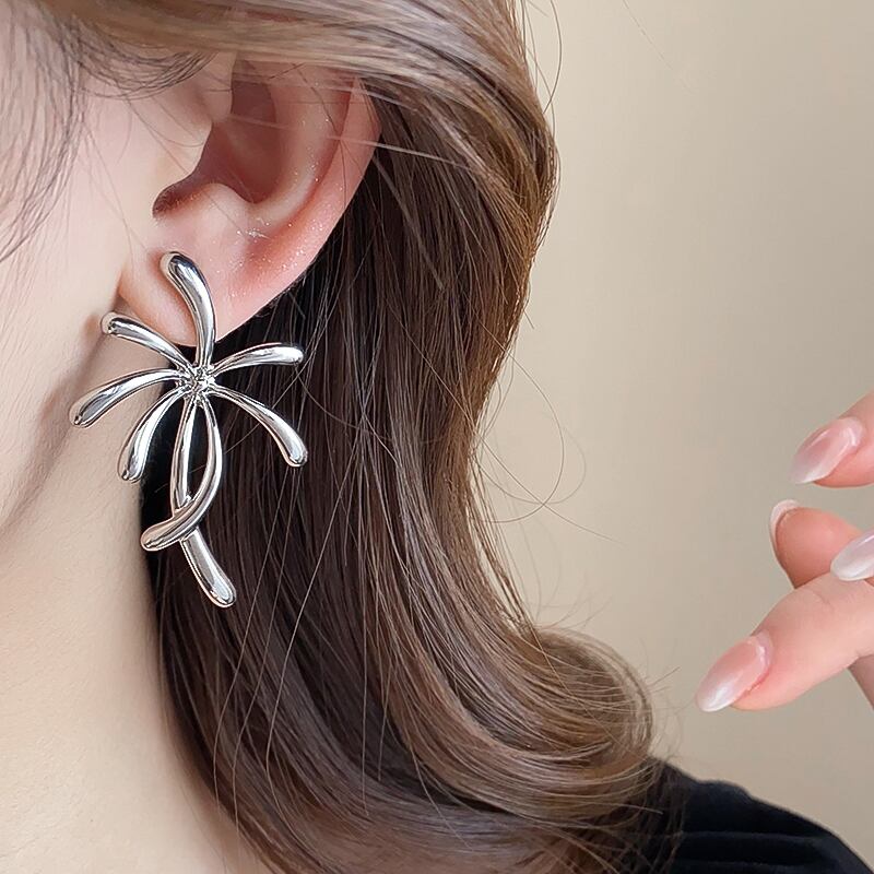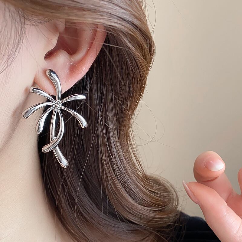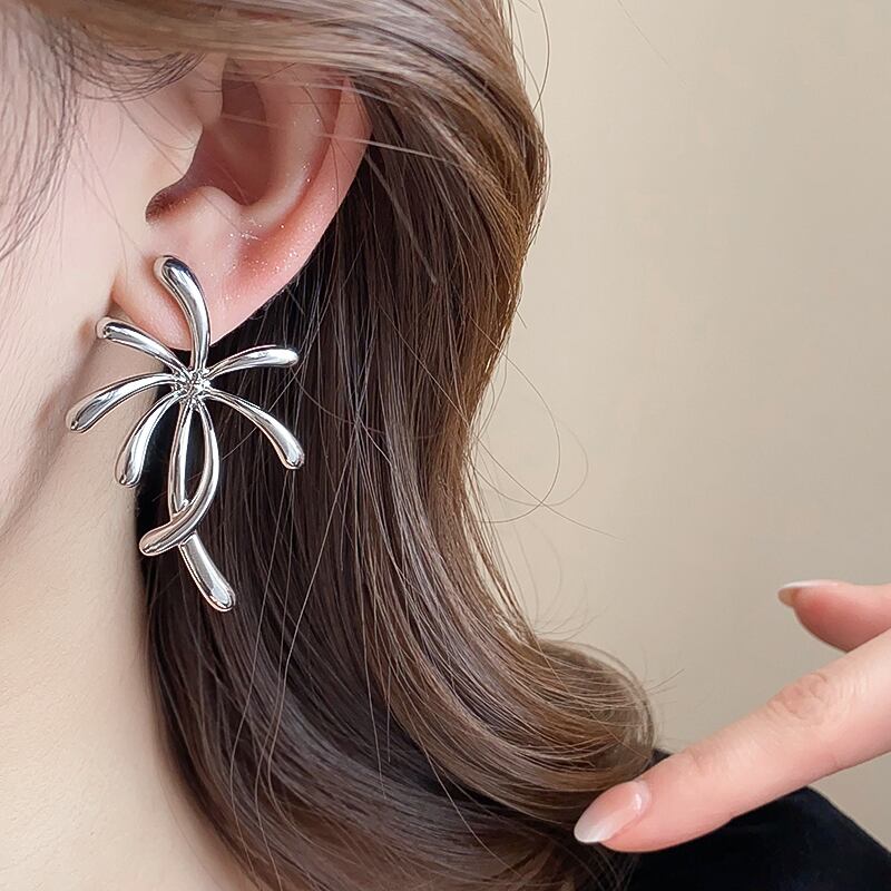 中心から曲線が広がる立体的なデザインで耳元を華やかに演出。