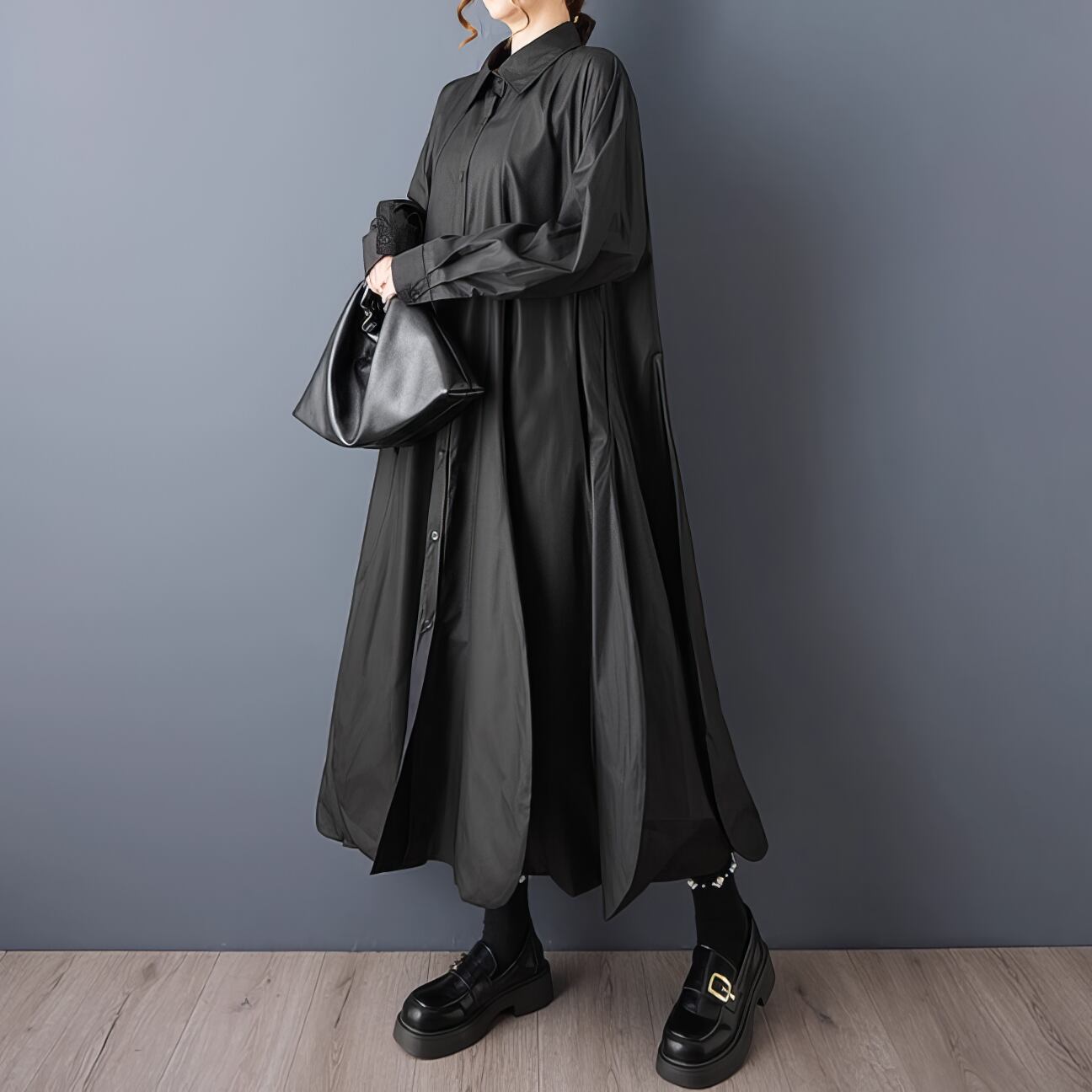 動くたびに生まれるドレープが美しく、モードな存在感を放ちます。