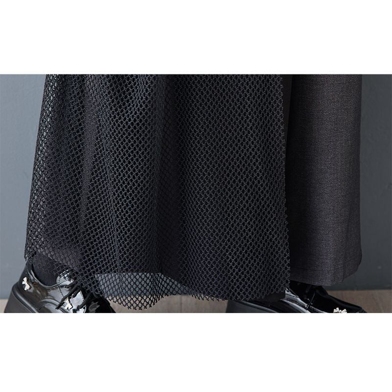 左右非対称のパネル切替とメッシュの透け感が、モードな存在感を放ちます。