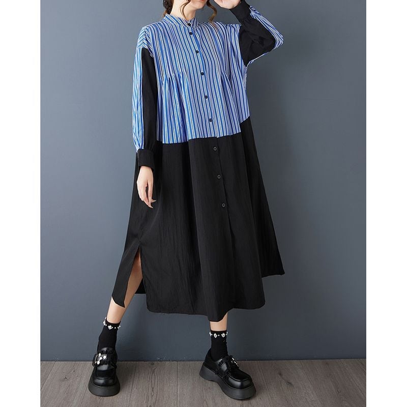 胸元で切り替えたストライプ柄が印象的なロングシャツワンピース。