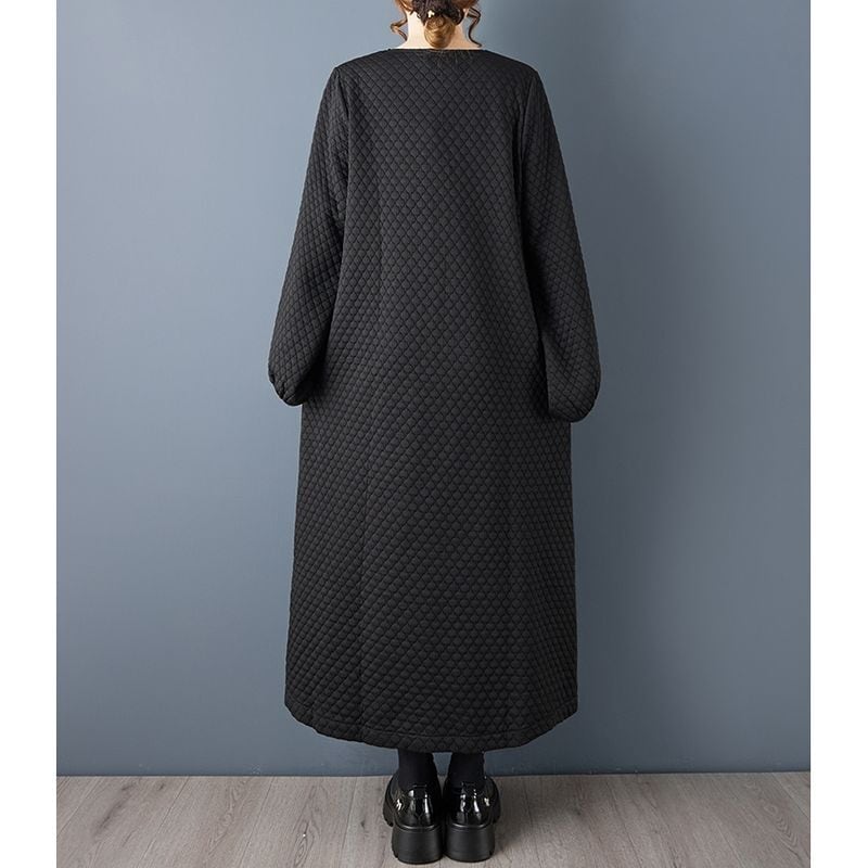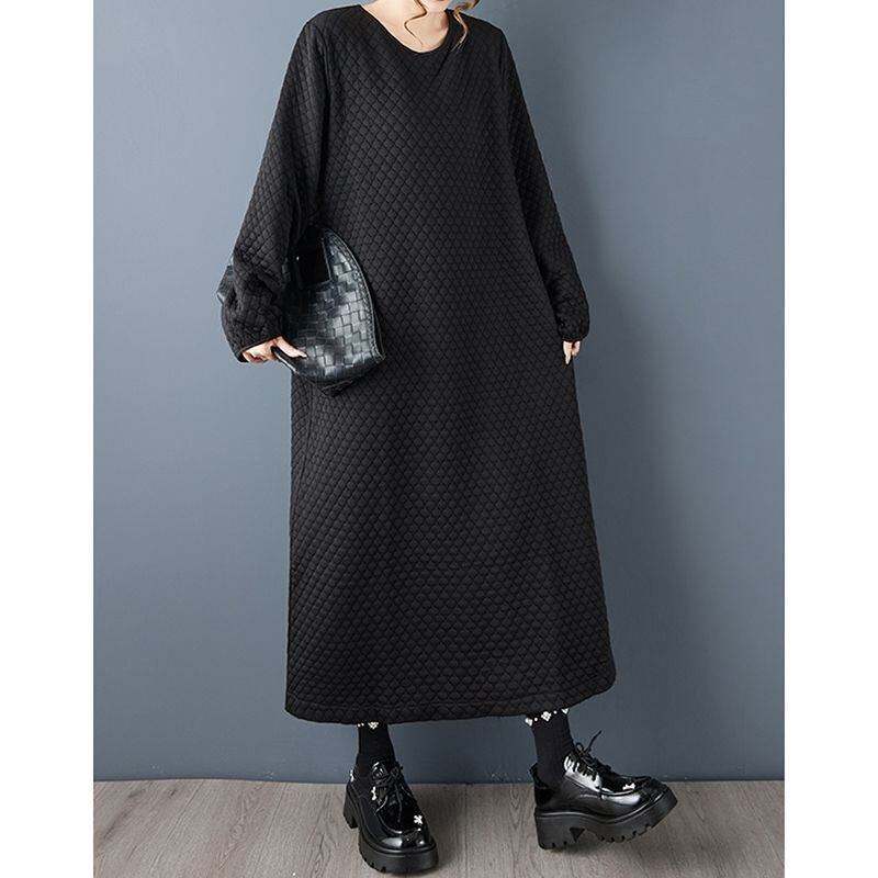 ダイヤ型のステッチが立体感を生むロングワンピース。
