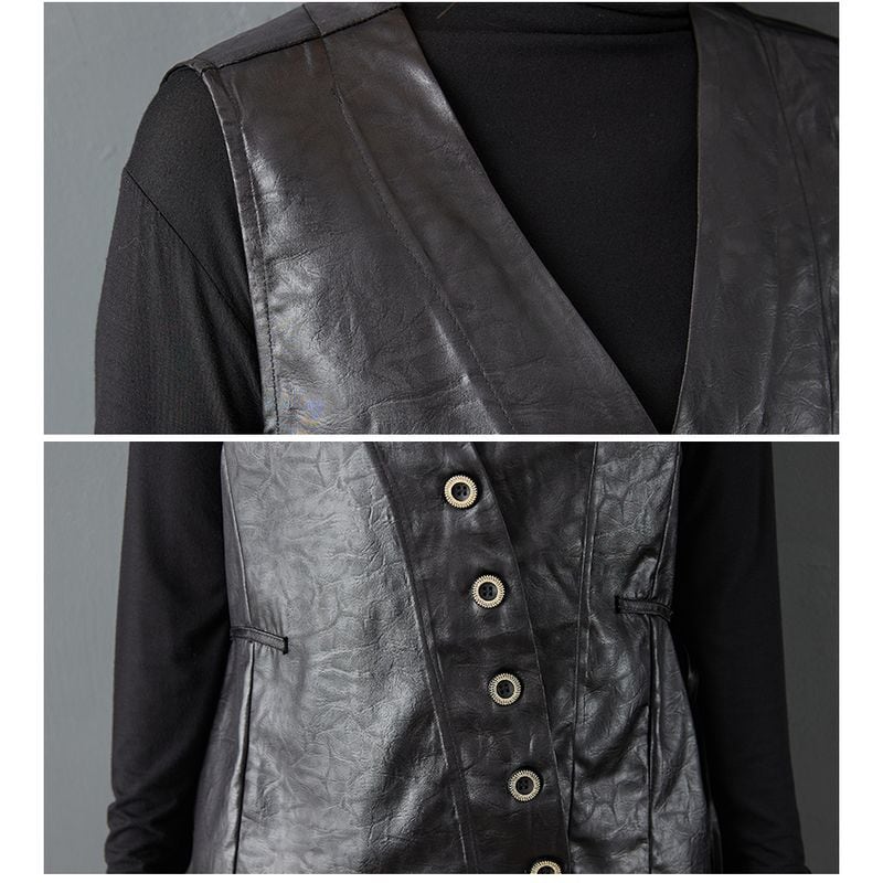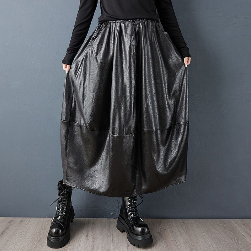 黒のフェイクレザーで統一した、洗練されたレトロスタイル。
