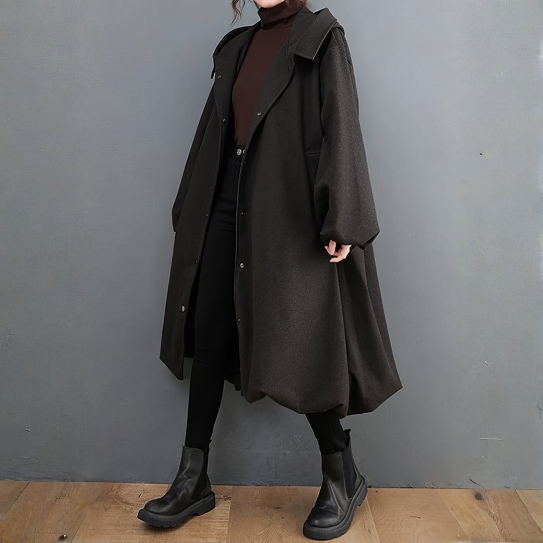 コクーンシルエット×バルーンスリーブの立体フォルムが魅力のオーバーコート。
