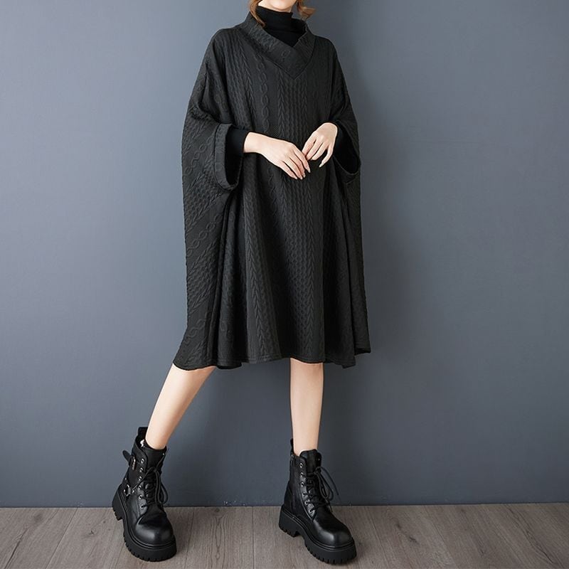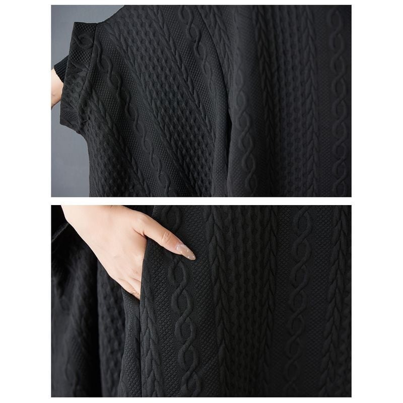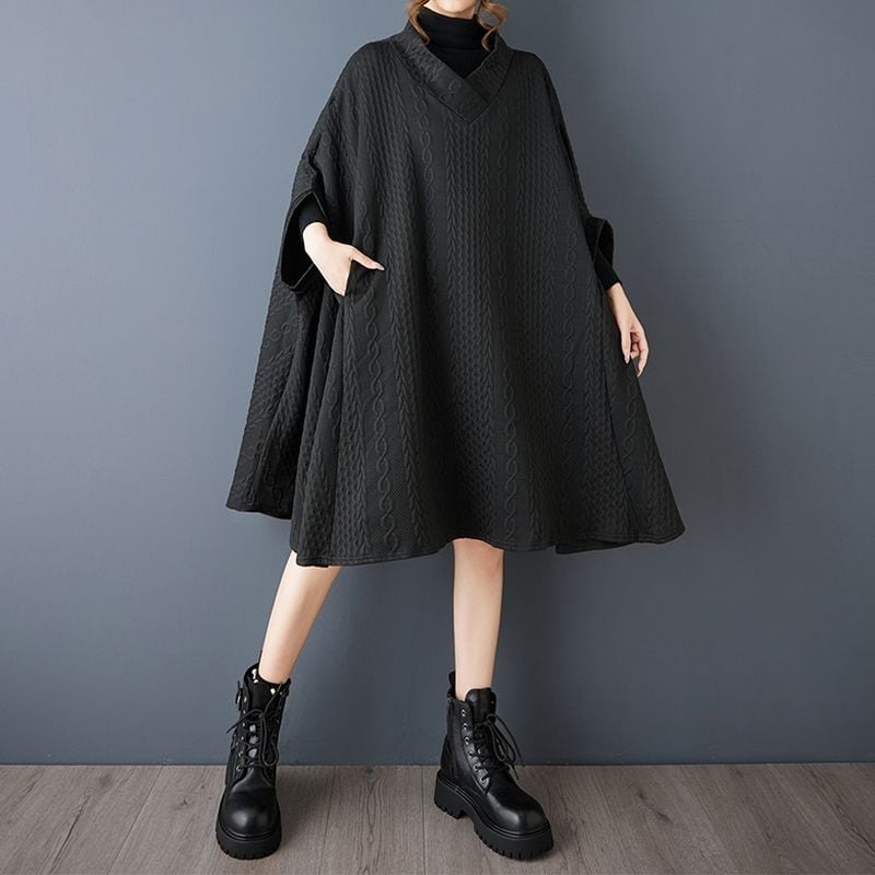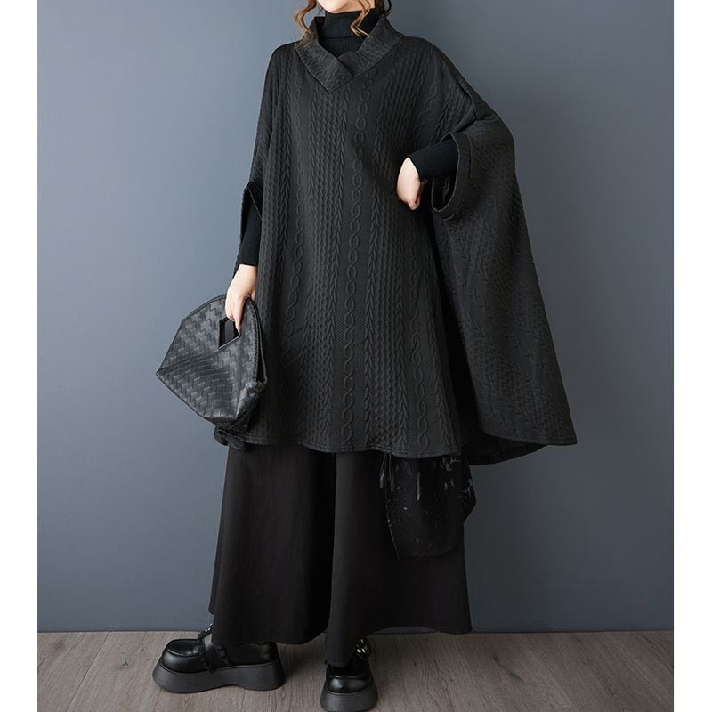 立体感のあるケーブル調デザインが目を惹くポンチョ風トップス。