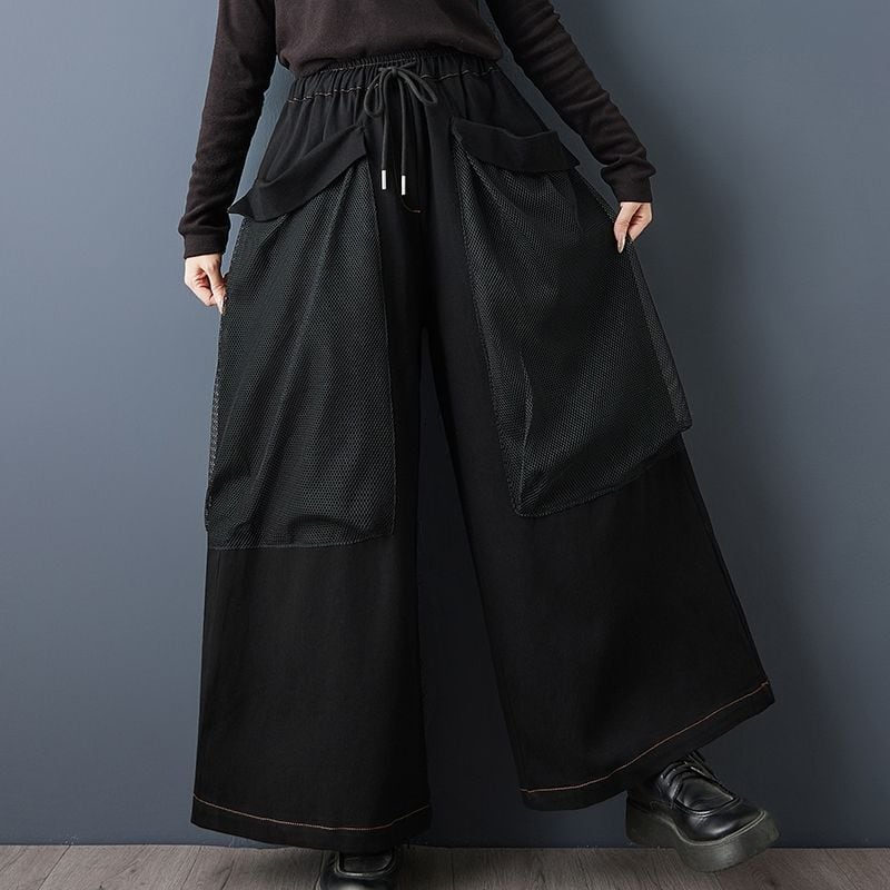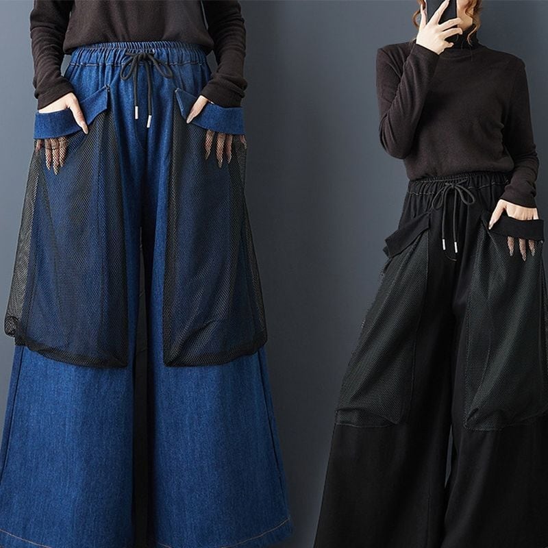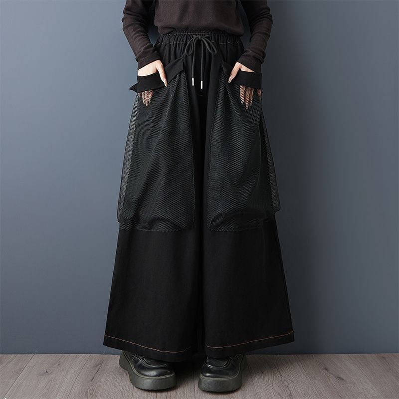 立体感のあるメッシュオーバーレイが印象的なワイドパンツ。