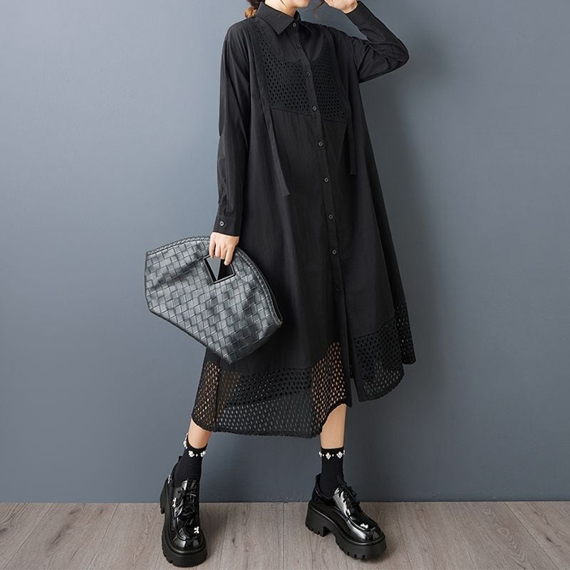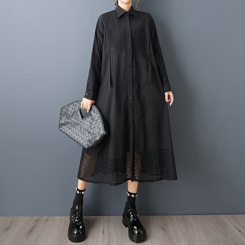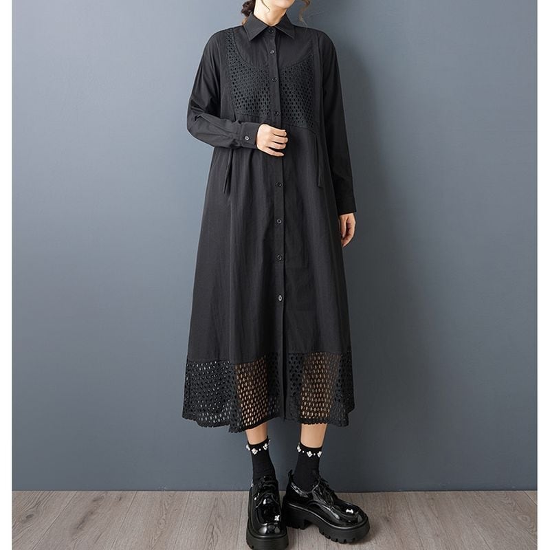 繊細なパンチングデザインが印象的なロングシャツワンピース。