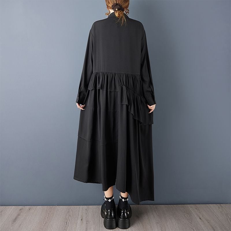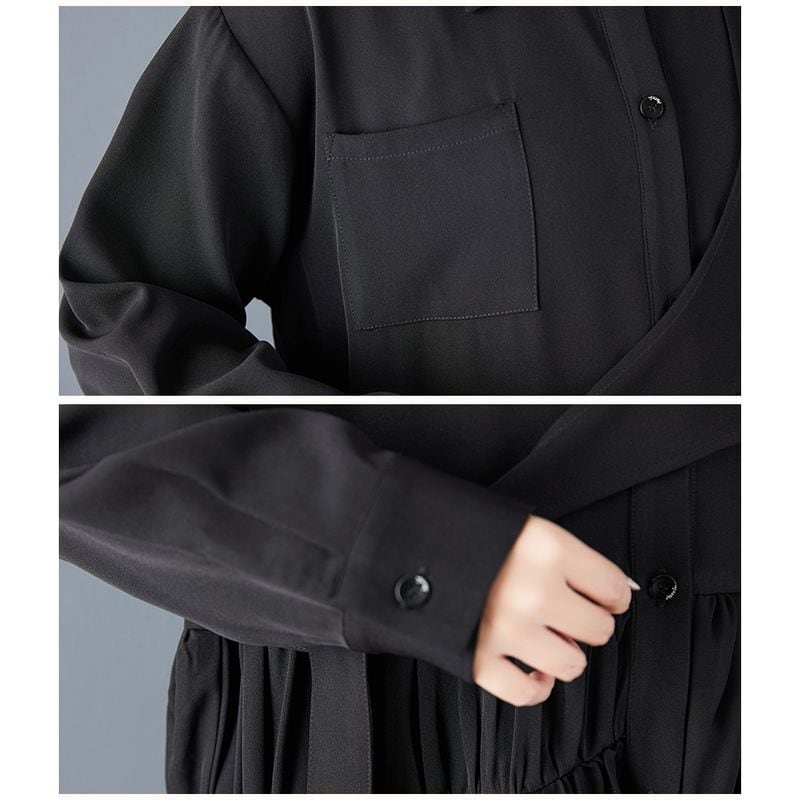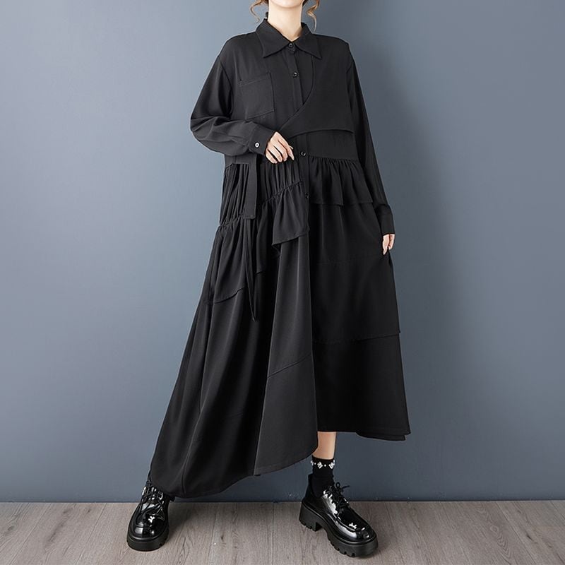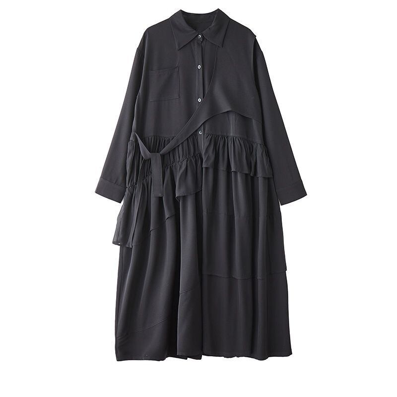 シャツの端正さに、ランダムなティアードを重ねたデザイン性の高い一着です。