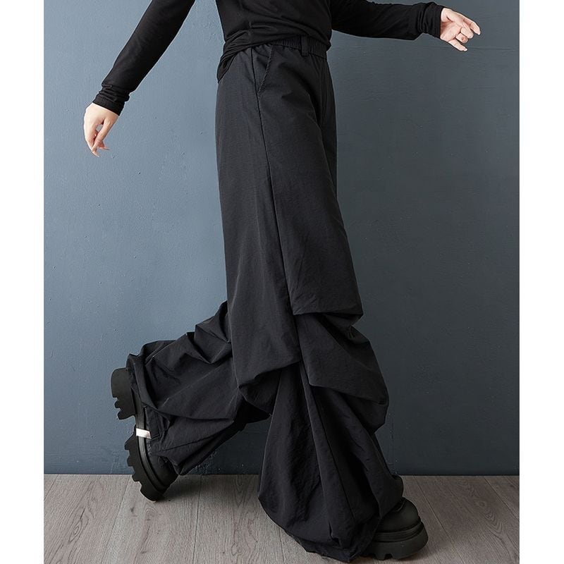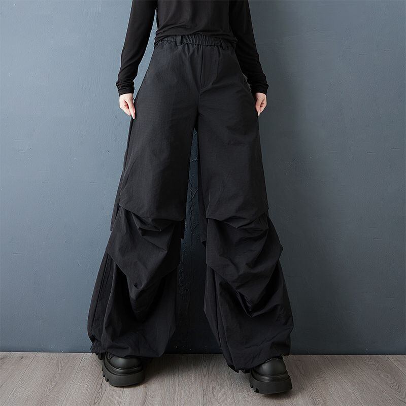 膝下から裾にかけてティアード状に重なる段々デザインが、ボリュームと立体感を生むワイドパンツ。