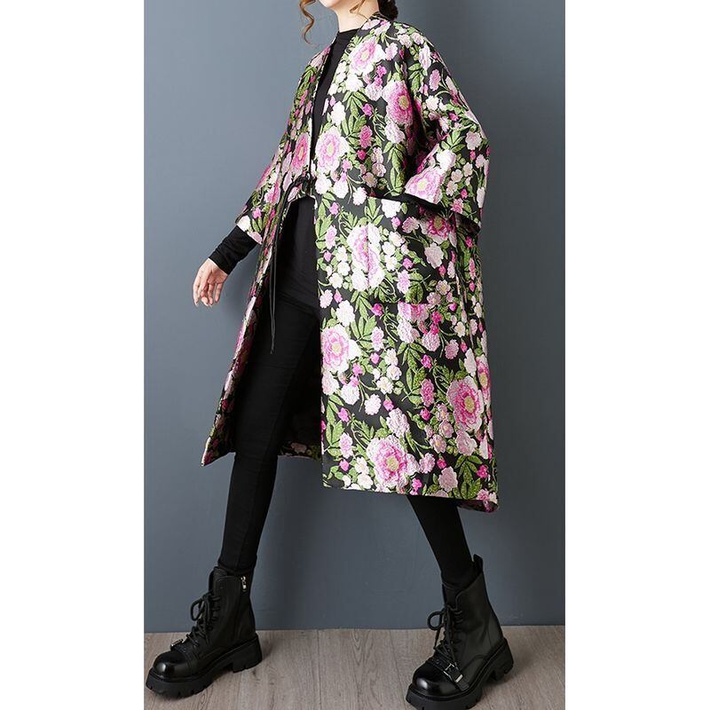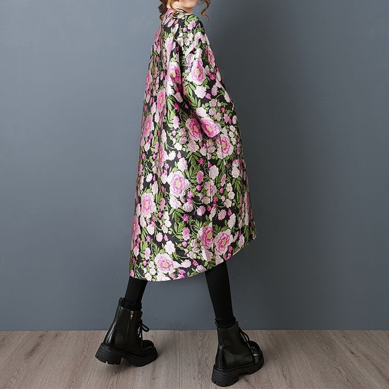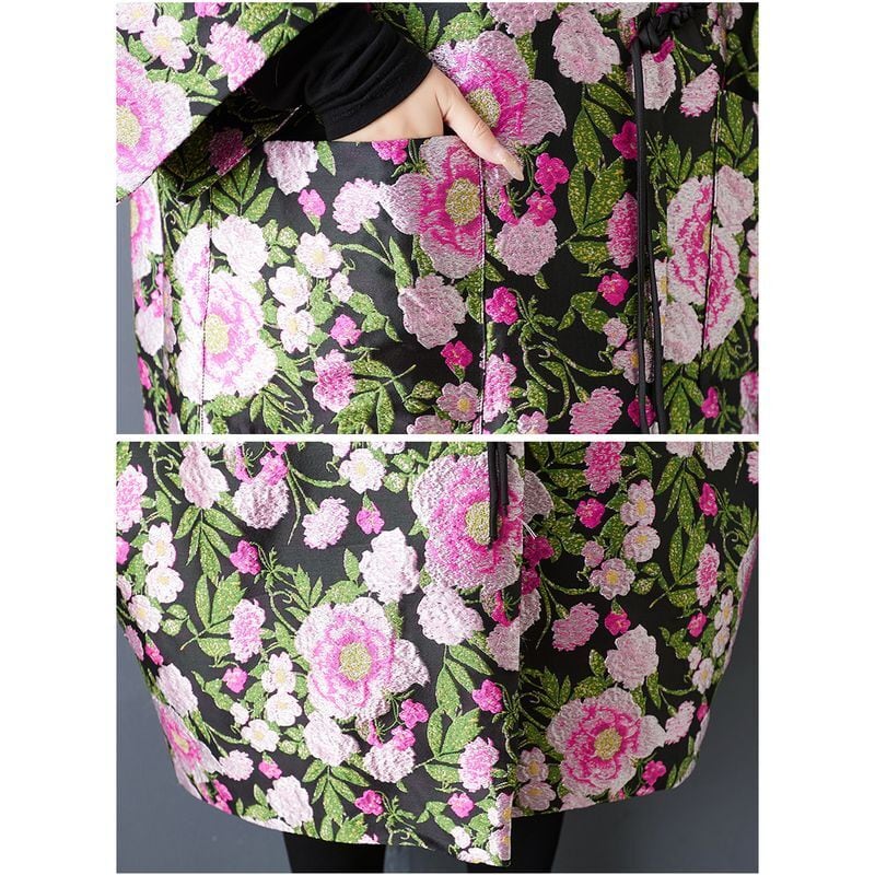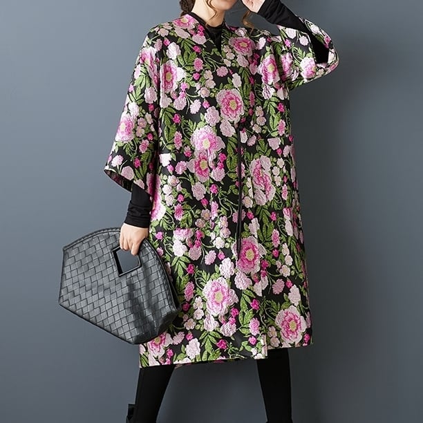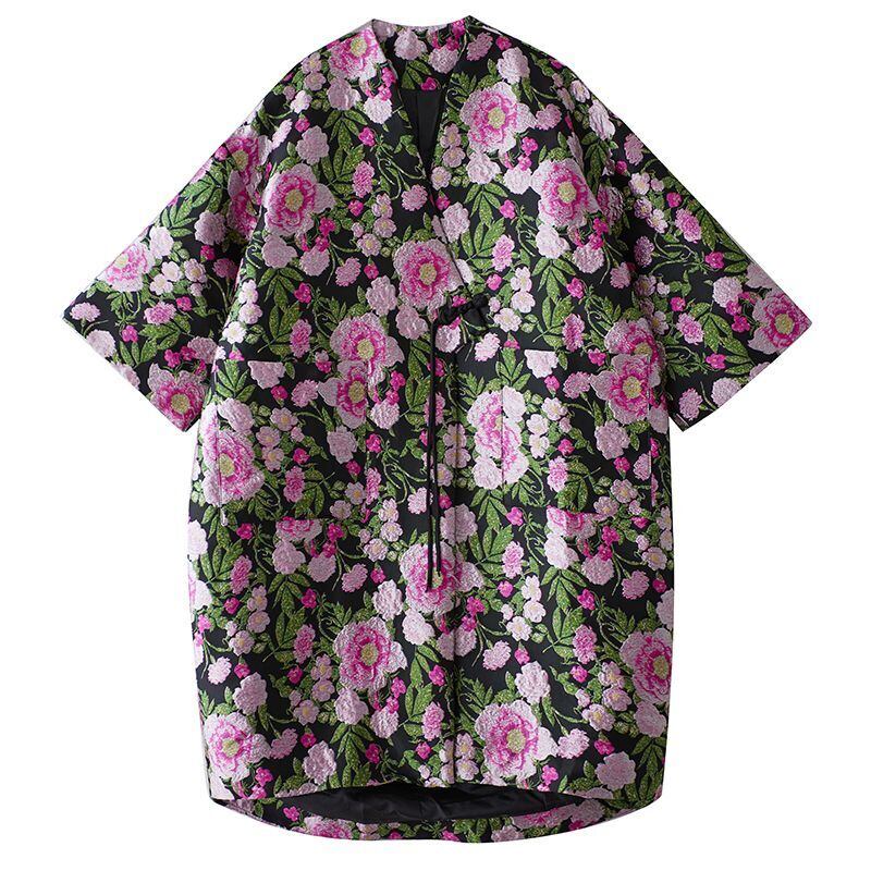 華やかな花柄ジャガードを贅沢にあしらったデザインで、装いに存在感を添える一枚です。