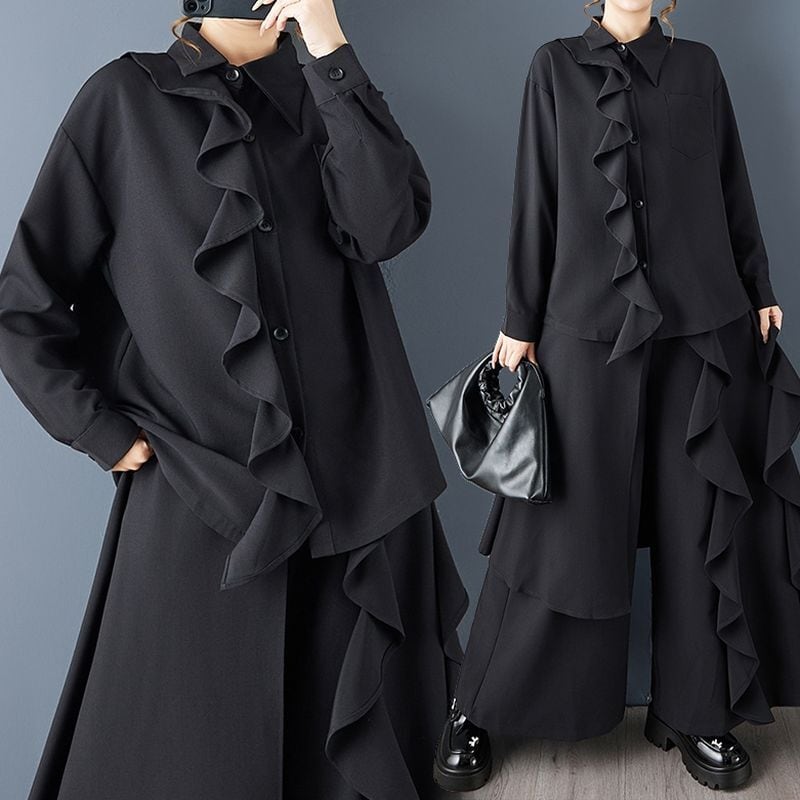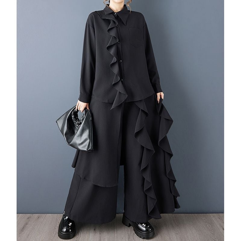 ゆったりとしたオーバーサイズシルエットで、立体的なフリルを際立たせます。