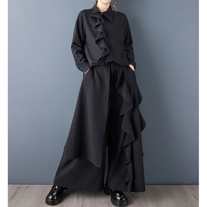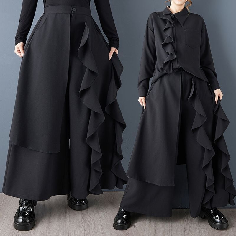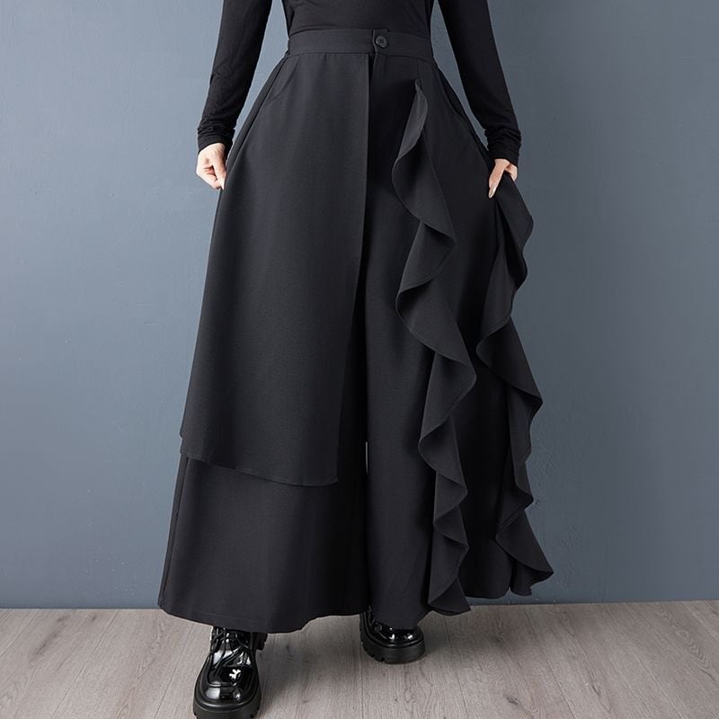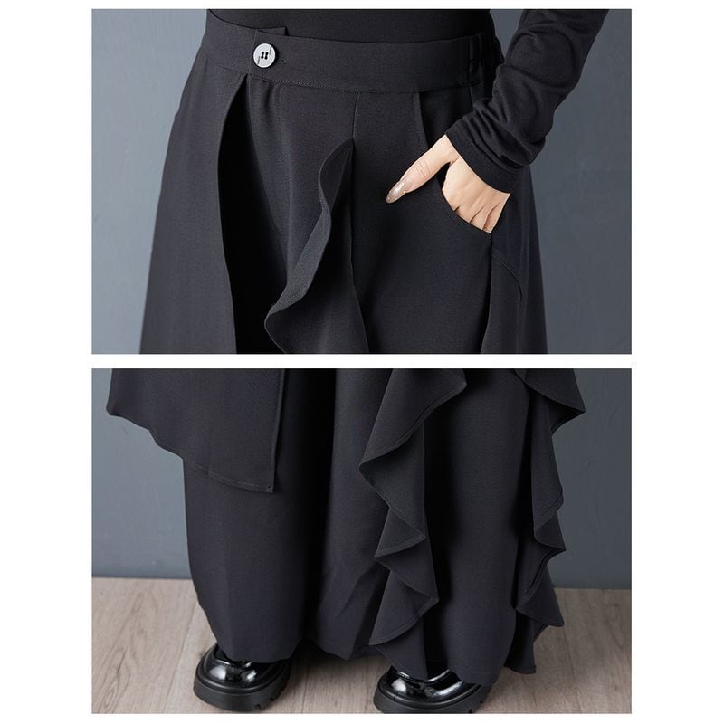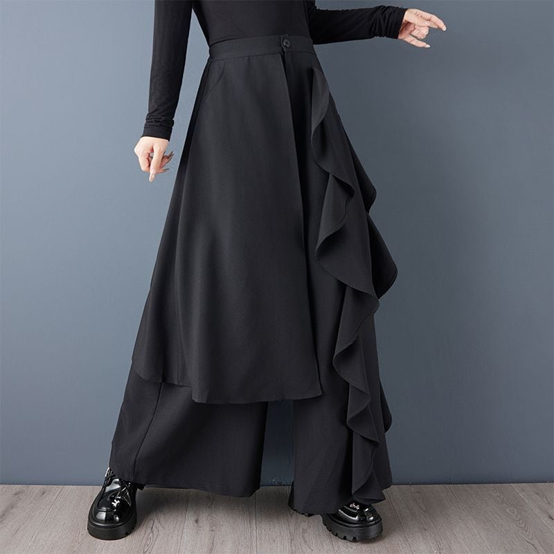 アシンメトリー フリル ワイドパンツ 00323