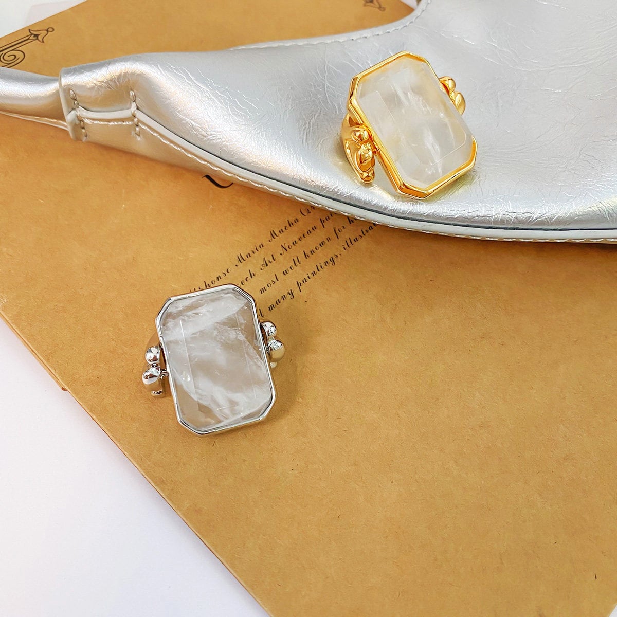 シルバーとゴールドの2カラーがあり、それぞれ異なるストーンのニュアンスが楽しめます。