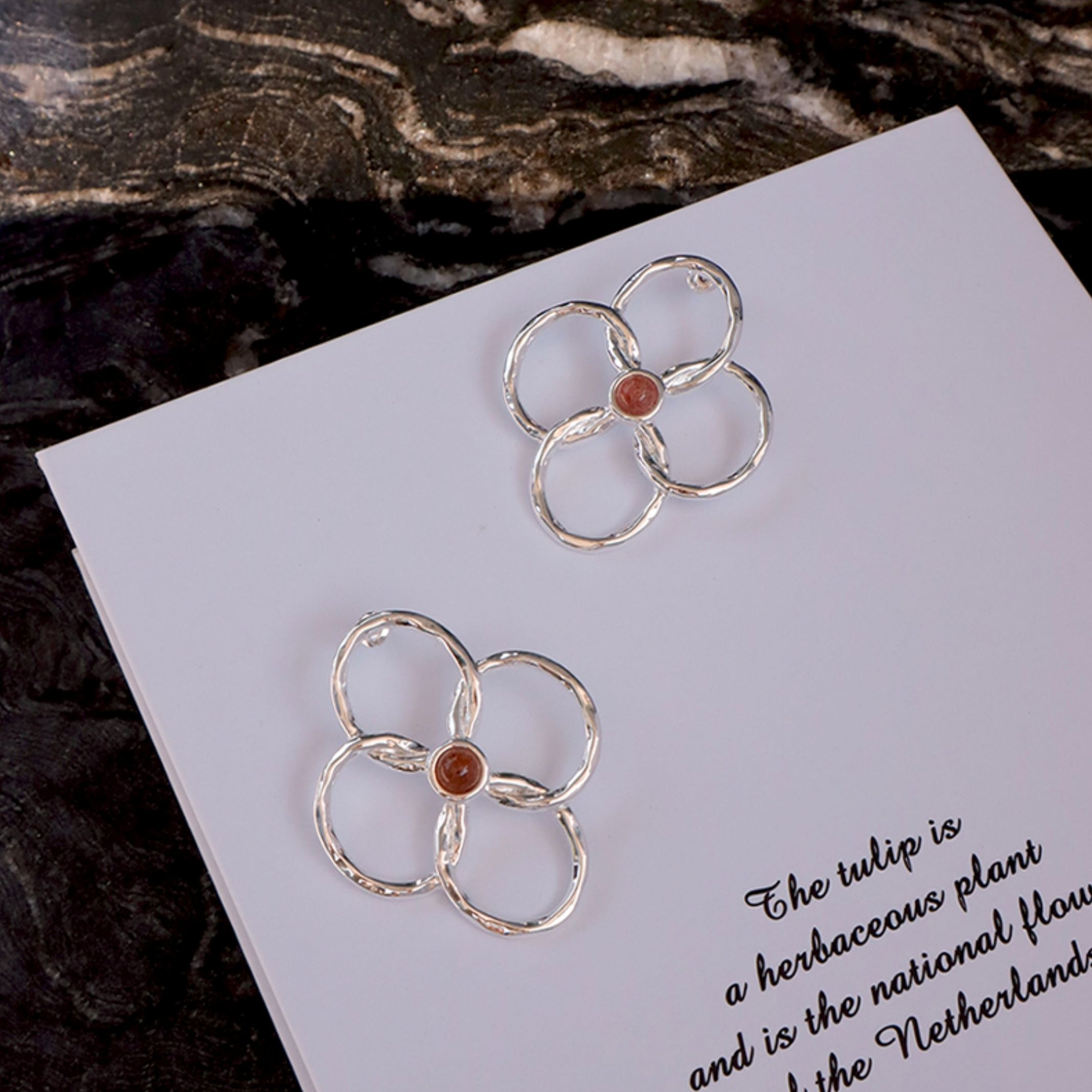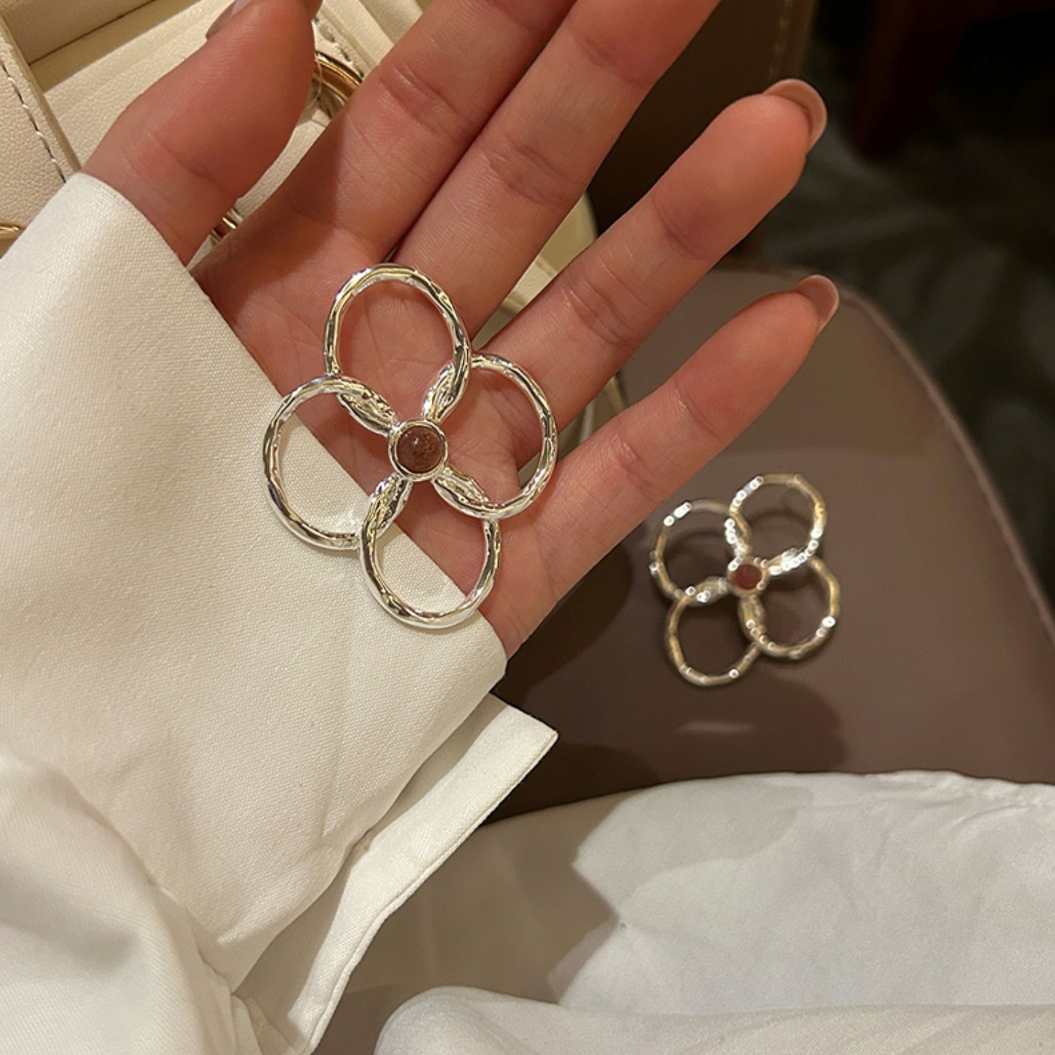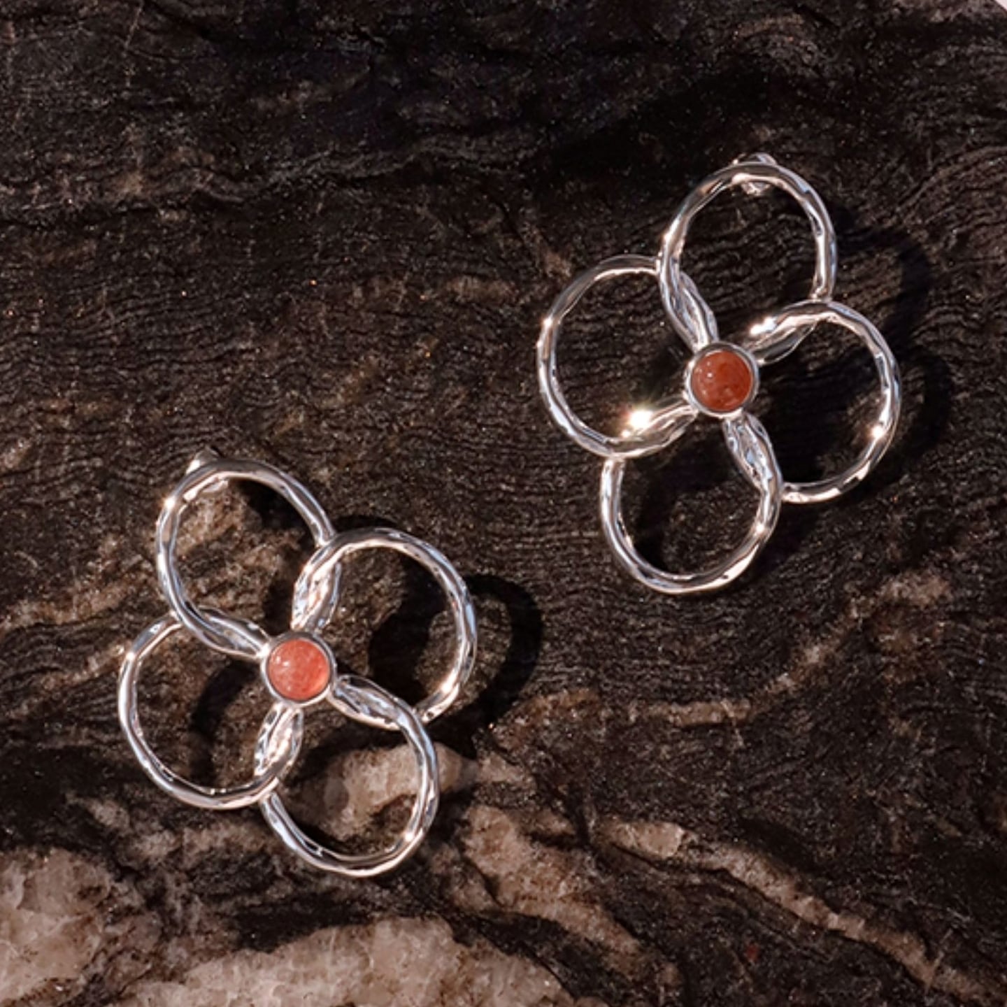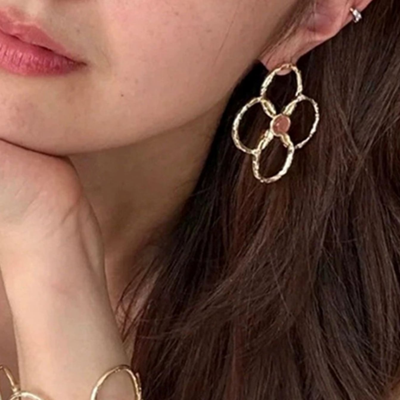 4つの輪が連なったフラワー調モチーフが揺れる、存在感のあるデザインピアス。