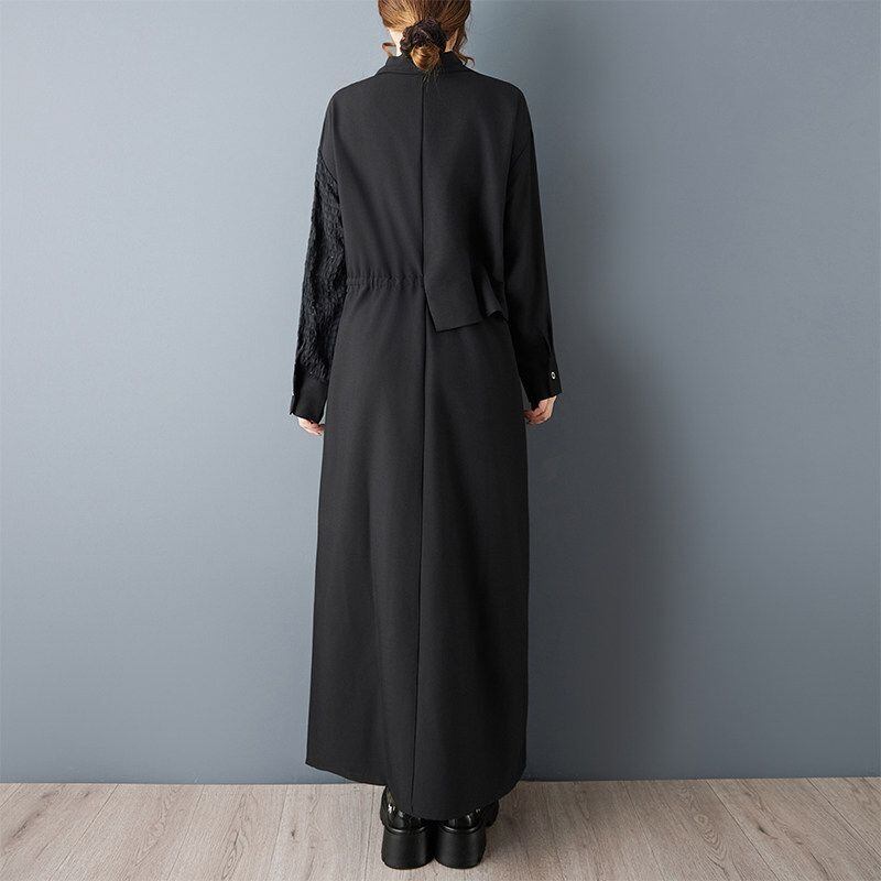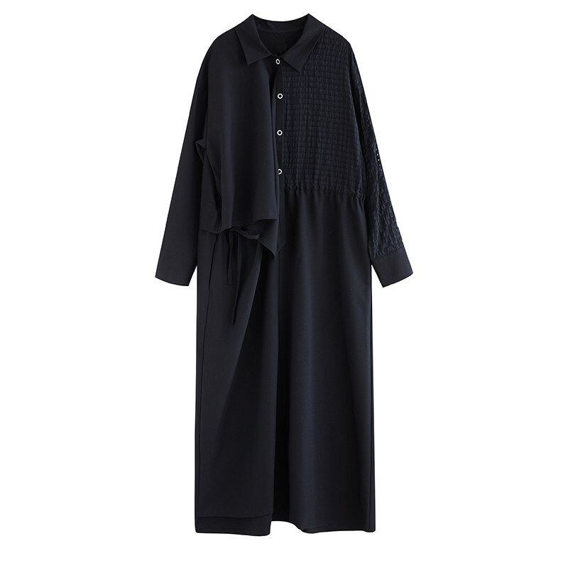 アシンメトリーな切替デザインが目を引くシャツワンピース。