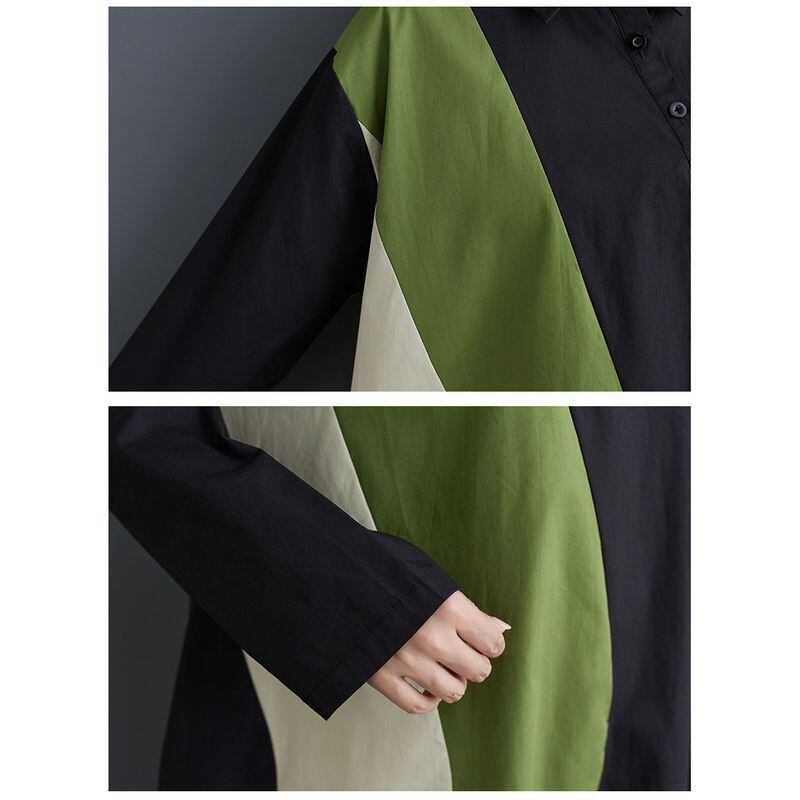 カラーブロック 切替 シャツワンピース 00055