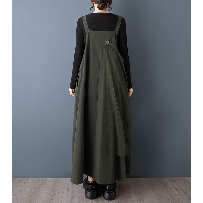 ボタンとチュールがアクセントになったサスペンダースカート。