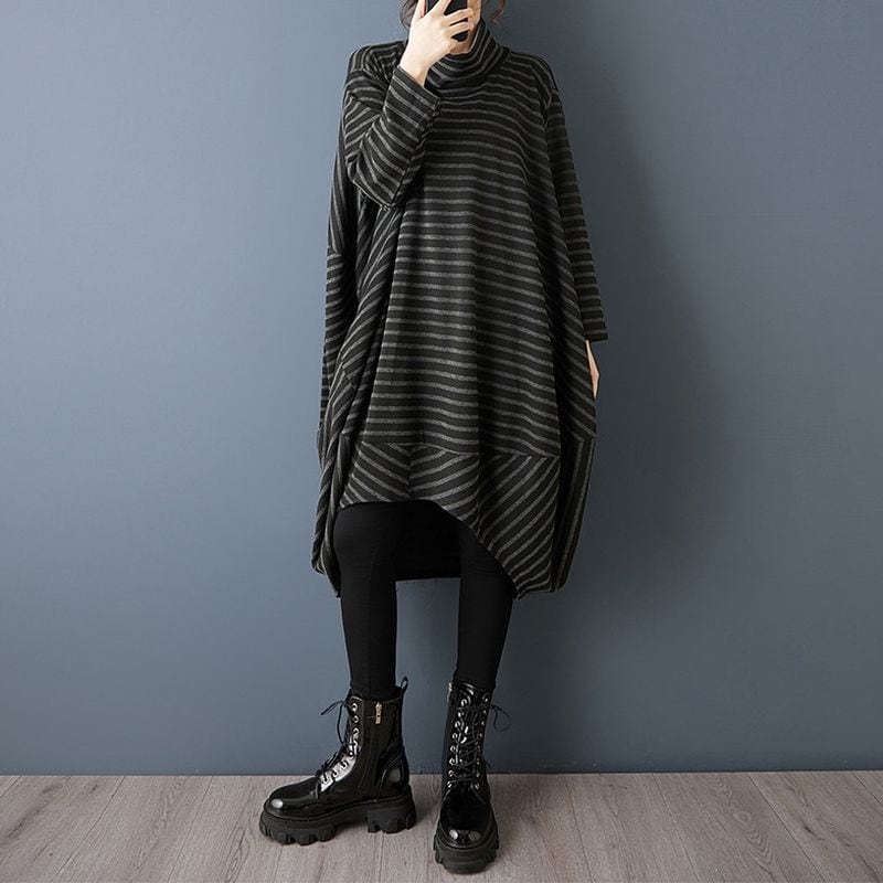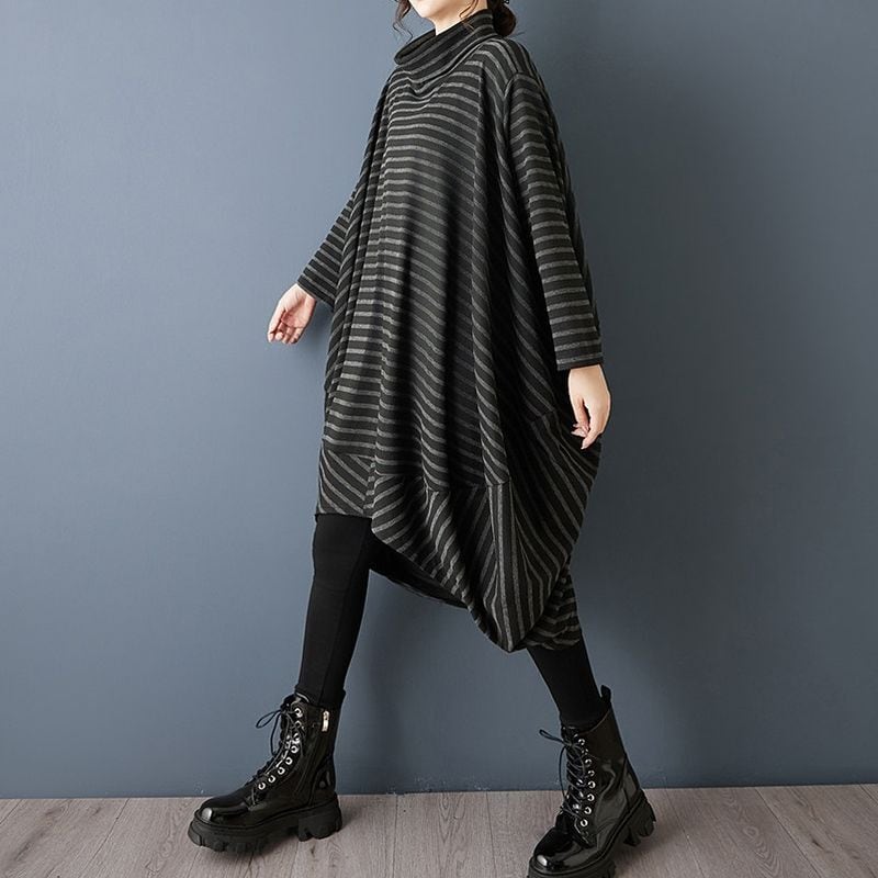 ボーダー柄を立体的に組み合わせた、表情のあるワンピース。