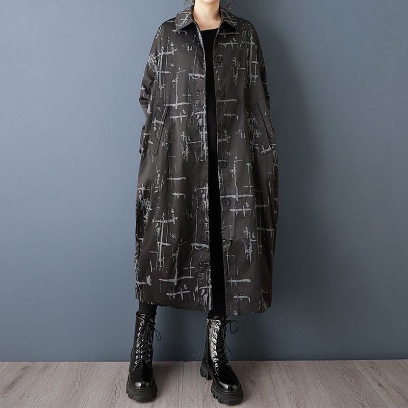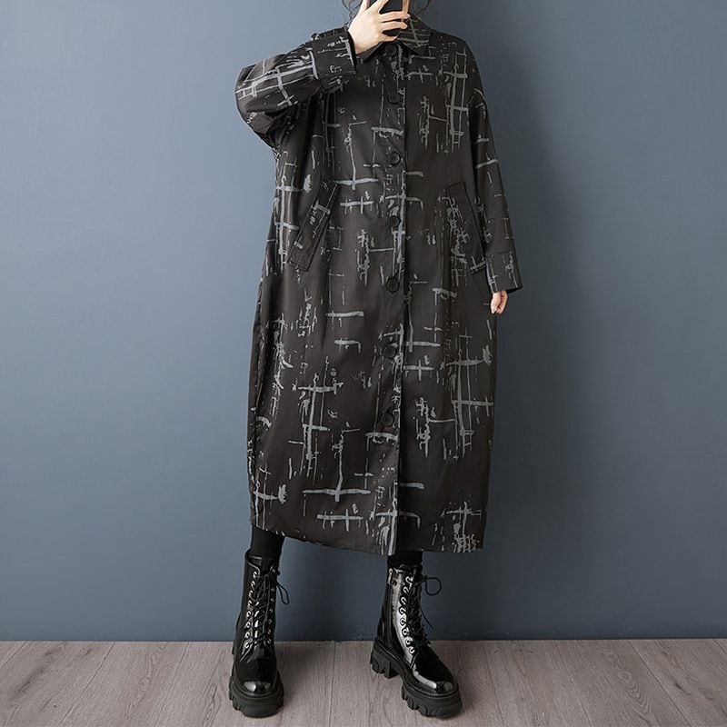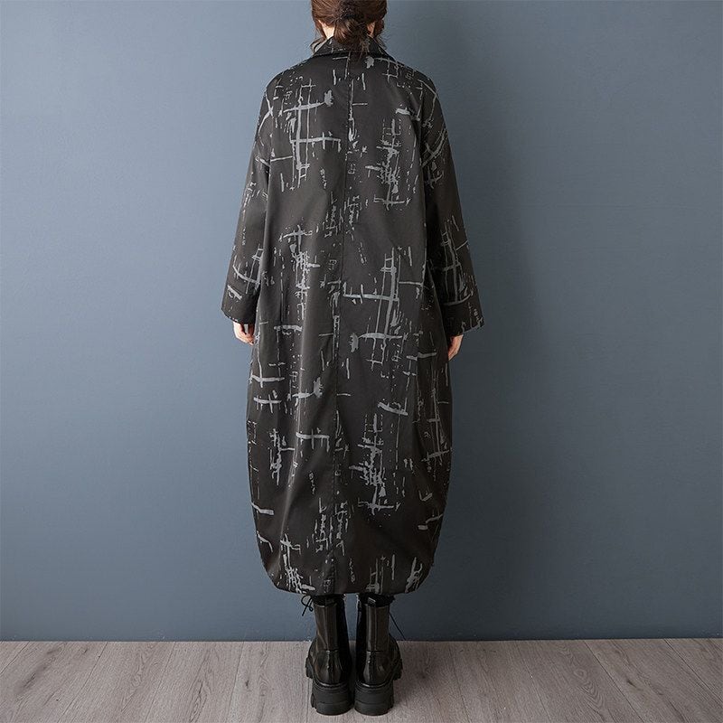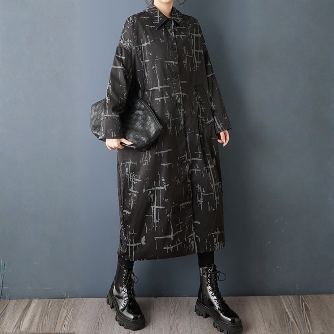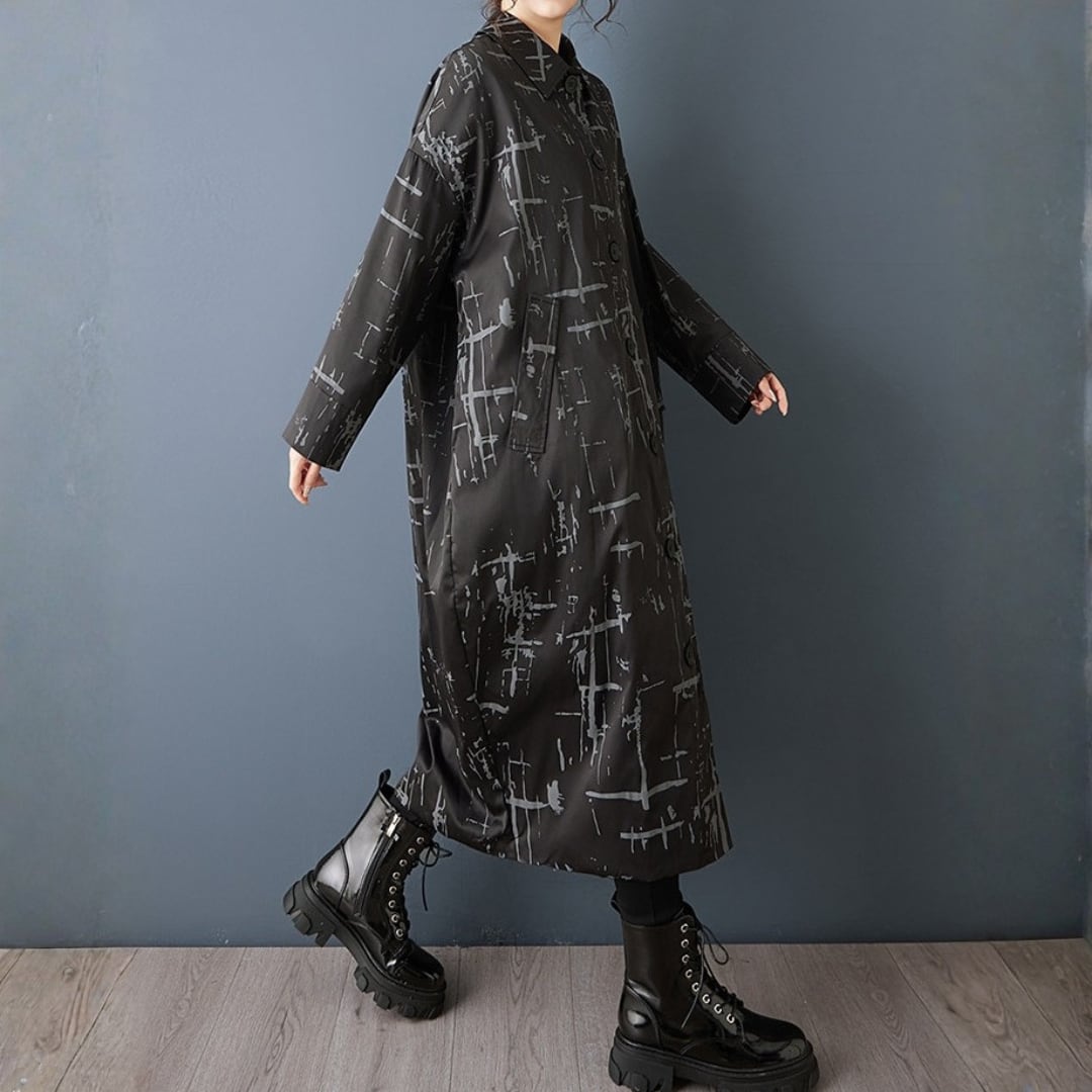線画のようなアート柄が印象的なロングワンピース。