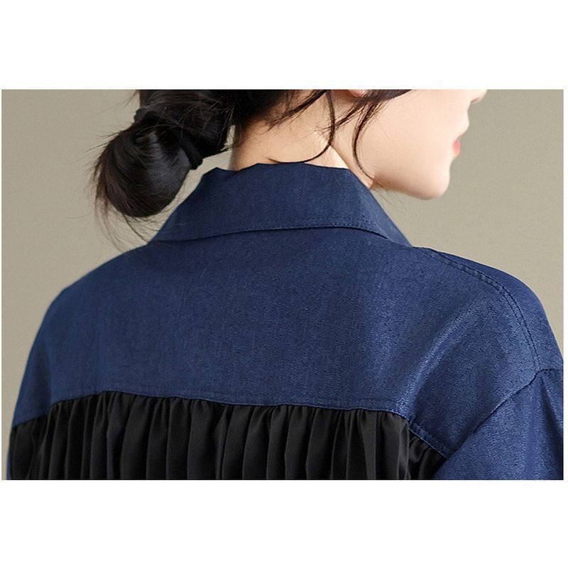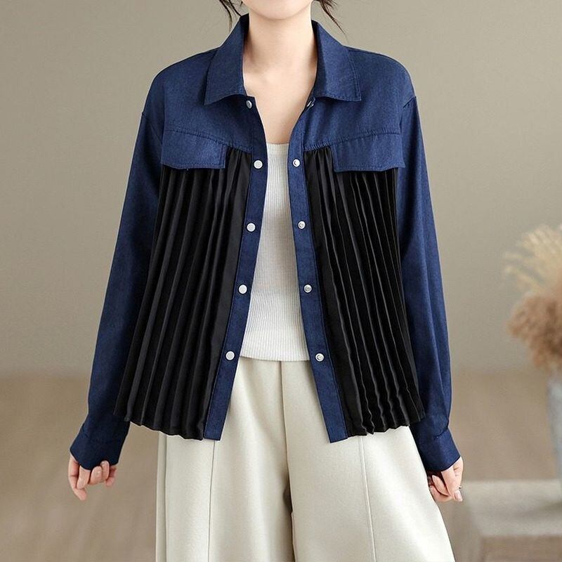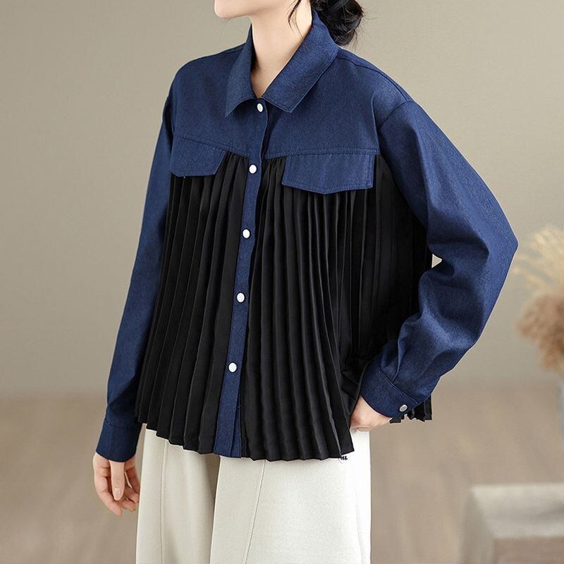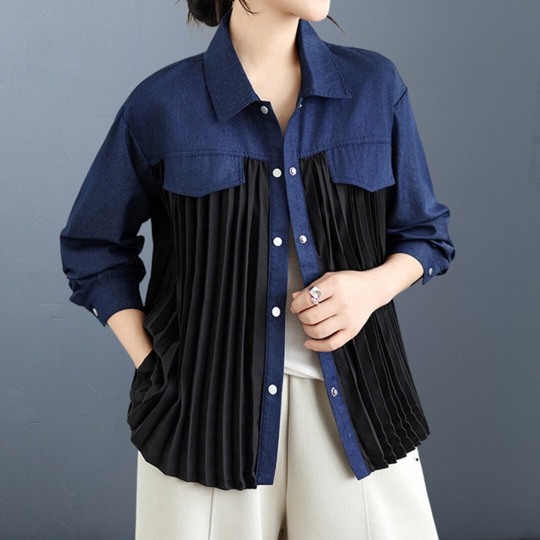 異素材のコントラストが目を惹く、存在感のあるデザインシャツ。